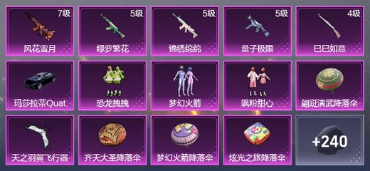 Kar98K-巳巳如意,PKM-天星戰神,AKM-夜燈,AKM-霓虹街區,AKM-虎虎生威,AKM-彩虹符號,AKM-龍的傳人,AKM-萌趣顏糰子,M16A4-幻世戰舞者,M16A4-藍色火焰,M16A4-甜心亞夢,SCAR-L-暗夜玫瑰,SCAR-L-玉兔迎春,SCAR-L-紅色方程式,M416-夜燈,M416-糯團青竹,M416-藍色火焰,M416-紅色方程式,GROZA-異彩先驅,GROZA-彩虹符號,GROZA-懵萌河馬,AUG-耀粉歌者,AUG-天降萌嘰,AUG-青春冒險家,QBZ-彩虹符號,QBZ-飛馳魅影,M762-瑞龍福將,M762-天降萌嘰,M762-牛氣沖天,M762-天星戰神,M762-彩虹甜喵,Mk47-烏木金紋,Mk47-青春冒險家,G36C-懵萌河馬,G36C-時空追擊者,AC-VAL-甜心亞夢,AC-VAL-彩虹甜喵,AC-VAL-天降萌嘰,AC-VAL-烏木金紋,蜜獾-嬌憨豬豬,蜜獾-天降萌嘰,Kar98K-紅色方程式,Kar98K-飛馳魅影,Kar98K-彩虹符號,Kar98K-王子的夏天,Kar98K-炫彩節奏,M24-香水檸檬,AWM-垂柳戲鴨,Win94-瑞龍福將,Win94-怪笑瘋兔,莫辛納甘-懵萌河馬,莫辛納甘-烏木金紋,M200-仲夏莫吉托,SKS-炫彩節奏,SKS-時空追擊者,VSS-星之彼岸,Mini14-異彩先驅,Mini14-塗山之戀,Mini14-耀粉歌者,Mk14-烏木金紋,Mk14-冰河戰士,SLR-彩虹符號,SLR-嬌憨豬豬,QBU-青春冒險家,UZI-烈焰拳霸,UZI-嬌憨豬豬,UZI-炫彩節奏,UZI-聯接者(華為),UZI-啾咪啾咪,UZI-紅色方程式,UMP45-時空追擊者,UMP45-生命誓言,UMP45-藍色火焰,Vector-彩虹符號,Vector-生命誓言,湯姆遜-異彩先驅,湯姆遜-奇異狩獵者,湯姆遜-環太平洋,湯姆遜-耀粉歌者,野牛-青春冒險家,野牛-天星戰神,MP5K-異彩先驅,P90-飛馳魅影,S686-生命誓言,S686-葫蘆兄弟,S1897-炫彩節奏,S1897-飛馳魅影,S12K-瑞龍福將,S12K-嬌憨豬豬,S12K-夜燈,S12K-幻世戰舞者,DBS-時空追擊者,DBS-甜心亞夢,M249-糯團青竹,M249-彩虹符號,M249-蓮影清波,M249-破曉戰魂,DP-28-甜心亞夢,DP-28-彩虹符號,MG3-幻世戰舞者,MG3-烏木金紋,MG3-瑞龍福將,PKM-懵萌河馬,撬棍-幻世戰舞者,平底鍋-夢之光華,平底鍋-青春冒險家,平底鍋-異彩先驅,平底鍋-嬌憨豬豬,平底鍋-甜心亞夢,平底鍋-瑞龍福將,平底鍋-時空追擊者,平底鍋-飛馳魅影,平底鍋-懵萌河馬,平底鍋-光之冒險,破片手榴彈-萌趣顏糰子