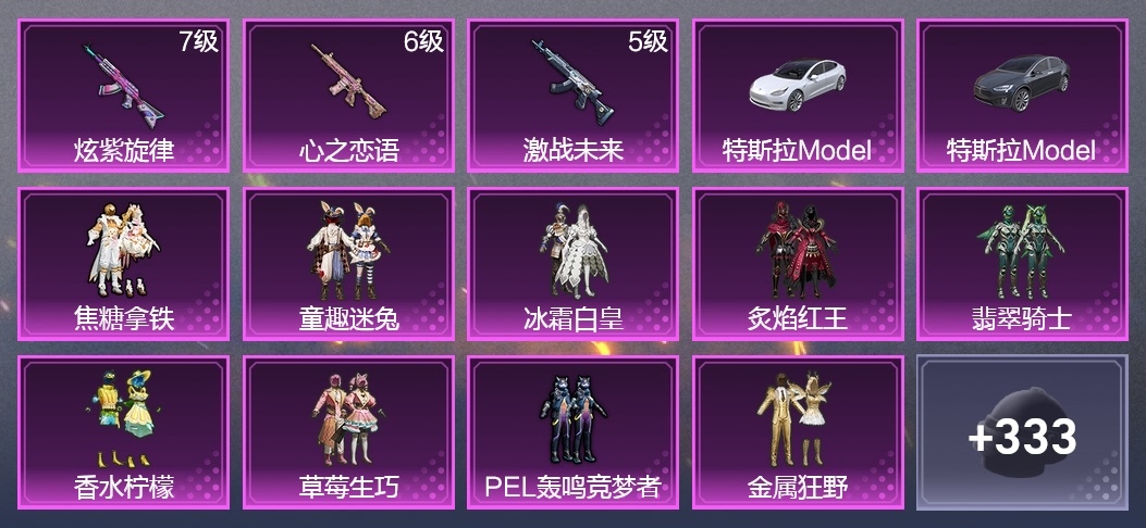 AKM-炫紫旋律,M416-心之戀語,M762-激戰未來,AKM-灼熱熔岩,AKM-萌趣顏糰子,AKM-錦繡火鯉,AKM-彩虹符號,AKM-四聖煥新,AKM-夜燈,M16A4-藍色火焰,M16A4-幻世戰舞者,M16A4-機械英豪,M16A4-夜燈,SCAR-L-紅色方程式,SCAR-L-玉兔迎春,SCAR-L-炫彩節奏,M416-夜燈,M416-紅色方程式,M416-緋紅前夜,M416-神秘黑貓,M416-葫蘆兄弟,M416-糯團青竹,GROZA-治癒之星,GROZA-彩虹符號,GROZA-黑色刀鋒,GROZA-懵萌河馬,AUG-天降萌嘰,AUG-青春冒險家,QBZ-原初聖火,QBZ-神秘黑貓,QBZ-彩虹符號,QBZ-洛神天依,M762-牛氣沖天,M762-天降萌嘰,M762-鐳射皇者,M762-瑞龍福將,M762-緋紅前夜,Mk47-青春冒險家,Mk47-妙紅點點,Mk47-洛神天依,Mk47-烏木金紋,G36C-懵萌河馬,G36C-不夜海上花,G36C-金風玉露,G36C-時空追擊者,AC-VAL-烏木金紋,蜜獾-天降萌嘰,Kar98K-勇闖險境,Kar98K-華貴君王,Kar98K-彩虹符號,M24-冰封烈焰,M24-治癒之星,M24-眾神之王,AWM-海螺星光,AWM-不夜海上花,Win94-瑞龍福將,Win94-機械英豪,Win94-夏日綿綿冰,莫辛納甘-懵萌河馬,莫辛納甘-烏木金紋,AMR-妙紅點點,M200-驚鴻俠骨,SKS-焦糖拿鐵,SKS-心之戀語,SKS-未來歌姬,SKS-勇闖險境,SKS-時空追擊者,SKS-炫彩節奏,VSS-黑色刀鋒,VSS-彩虹符號,VSS-鐳射皇者,Mini14-馬卡龍,Mini14-原初聖火,Mini14-金鼠迎春,Mini14-炫彩節奏,Mk14-烏木金紋,Mk14-治癒之星,Mk14-童趣迷兔,SLR-彩虹符號,SLR-眾神之王,QBU-不夜海上花,QBU-烈焰拳霸,QBU-青春冒險家,M417-驚鴻俠骨,UZI-烈焰拳霸,UZI-金風玉露,UZI-紅色方程式,UZI-古堡領主,UZI-眾神之王,UMP45-生命誓言,UMP45-天啟紀元,UMP45-塗山之戀,UMP45-夜燈,UMP45-時空追擊者,Vector-香水檸檬,Vector-治癒之星,Vector-黑色刀鋒,湯姆遜-勇闖險境,湯姆遜-銀刃賽羅,野牛-青春冒險家,野牛-機械英豪,MP5K-甜蜜誓約,MP5K-颯粉甜心,MP5K-眾神之王,MP5K-繁花小夜曲,P90-飛馳魅影,S686-彩虹符號,S686-不夜海上花,S686-冰封烈焰,S686-生命誓言,S686-深海曼妙,S1897-勇闖險境,S1897-碧影閃光,S1897-鐳射皇者,S1897-神秘黑貓,S12K-焦糖拿鐵,S12K-幻世戰舞者,S12K-瑞龍福將,S12K-機械英豪,S12K-童趣迷兔,S12K-玩趣呆呆,DBS-時空追擊者,DBS-彩虹符號,M249-妙紅點點,M249-鐳射皇者,M249-糯團青竹,DP-28-錦繡火鯉,DP-28-甜心寶貝,DP-28-原初聖火,DP-28-潮萌小黃鴨,MG3-妙紅點點,MG3-烏木金紋,MG3-瑞龍福將,MG3-驚鴻俠骨,PKM-懵萌河馬,P1911-冰封烈焰,P18C-原初聖火,撬棍-緋紅前夜,撬棍-傳奇偵探,撬棍-甜心寶貝,平底鍋-繽紛糖果,平底鍋-勇闖險境,平底鍋-時空追擊者,平底鍋-治癒之星,平底鍋-原初聖火,平底鍋-飛行日記,平底鍋-妙紅點點,平底鍋-瑞龍福將,平底鍋-阿狸紅,平底鍋-黑色刀鋒,平底鍋-驚鴻俠骨,平底鍋-鐳射皇者,平底鍋-緋紅前夜,平底鍋-炫紫旋律,平底鍋-眾神之王,平底鍋-不夜海上花,平底鍋-懵萌河馬,平底鍋-機械英豪,平底鍋-青春冒險家,平底鍋-冰封烈焰,爆炸獵弓-驚鴻俠骨,爆炸獵弓-炎氏戰神,破片手榴彈-萌趣顏糰子,破片手榴彈-潮萌小黃鴨