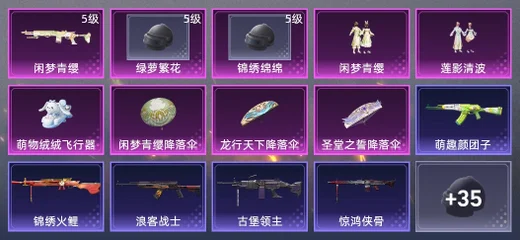 AKM-綠蘿繁花,SCAR-L-錦繡綿綿,M416-風花雪月,Kar98K-巳巳如意,UMP45-量子極限,AKM-2P戰鬥服款,AKM-龍的傳人,AKM-奇異狩獵者,AKM-彩虹符號,M16A4-冰河戰士,M16A4-藍色火焰,M16A4-蓮影清波,SCAR-L-海鹽豹豹,SCAR-L-幽秘魅影,SCAR-L-玉兔迎春,SCAR-L-紅色方程式,M416-糯團青竹,M416-詭夜天鵝,M416-藍色火焰,M416-紅色方程式,GROZA-彩虹符號,GROZA-懵萌河馬,GROZA-海鹽豹豹,GROZA-田園牧歌,GROZA-恐龍拽拽,AUG-耀粉歌者,AUG-天降萌嘰,QBZ-彩虹符號,QBZ-純真浪花,M762-天降萌嘰,M762-緋紅前夜,M762-彩虹符號,M762-奇異狩獵者,Mk47-烏木金紋,G36C-懵萌河馬,G36C-鏡域雙華,AC-VAL-天降萌嘰,AC-VAL-烏木金紋,AC-VAL-快閃甜心,蜜獾-天降萌嘰,蜜獾-精靈夢葉羅麗,蜜獾-嬌憨豬豬,Kar98K-黑白懵懵牛,Kar98K-彩虹符號,M24-奇異狩獵者,M24-炫彩節奏,AWM-焰鷹斗篷,AWM-海螺星光,AWM-聖堂之誓,AWM-純真浪花,莫辛納甘-懵萌河馬,莫辛納甘-烏木金紋,M200-驚鴻俠骨,M200-祥瑞錦鯉,SKS-糯團青竹,SKS-迅猛狂鯊,SKS-炫彩節奏,VSS-香桃花海,VSS-彩虹符號,VSS-田園牧歌,Mini14-香桃花海,Mini14-旋轉彩虹,Mini14-夢幻火箭,Mini14-塗山之戀,Mini14-穿刺龍蝦,Mk14-海螺星光,Mk14-冰河戰士,SLR-嬌憨豬豬,SLR-彩虹符號,SLR-守護天翼,QBU-颯粉甜心,M417-驚鴻俠骨,MK20-H-蓮影清波,MK20-H-快閃甜心,MK20-H-墨染幽蘭,UZI-嬌憨豬豬,UZI-天降萌嘰,UZI-冰河戰士,UZI-啾咪啾咪,UMP45-生命誓言,UMP45-藍色火焰,UMP45-塗山之戀,Vector-田園牧歌,Vector-焰鷹斗篷,Vector-生命誓言,湯姆遜-純真浪花,湯姆遜-暗夜鎏金,湯姆遜-天降萌嘰,湯姆遜-奇異狩獵者,P90-玩趣呆呆,P90-快閃甜心,S686-生命誓言,S686-紅色方程式,S686-奇異狩獵者,S1897-精靈夢葉羅麗,S12K-玩趣呆呆,S12K-是愛神辣,S12K-嬌憨豬豬,DBS-焰鷹斗篷,DBS-彩虹甜喵,DBS-第五大道,AA12-G-純真浪花,SPAS-12-田園牧歌,M249-彩虹符號,M249-糯團青竹,DP-28-甜蜜旋律,DP-28-彩虹符號,DP-28-焰鷹斗篷,MG3-烏木金紋,MG3-驚鴻俠骨,MG3-幻世戰舞者,PKM-懵萌河馬,P1911-粉錦千層,P18C-鏡光幻境,蠍式手槍-閒夢青纓,沙漠之鷹-快閃甜心,TMP-9-霓彩節奏,TMP-9-江南煙雨,撬棍-緋紅前夜,平底鍋-快閃甜心,平底鍋-五爪金龍,平底鍋-嬌憨豬豬,平底鍋-田園牧歌,平底鍋-空島之星,平底鍋-焰鷹斗篷,平底鍋-驚鴻俠骨,平底鍋-純真浪花,平底鍋-懵萌河馬,戰術弩-江南煙雨,爆炸獵弓-青蛇行歌,爆炸獵弓-驚鴻俠骨,煙霧彈-鳶尾晶夢,破片手榴彈-星途旅人,破片手榴彈-太空嘟嘟,破片手榴彈-呆爆全場