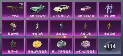 11粉裝,2載具造型,199槍皮,159套裝,3升級槍,2飛行器,