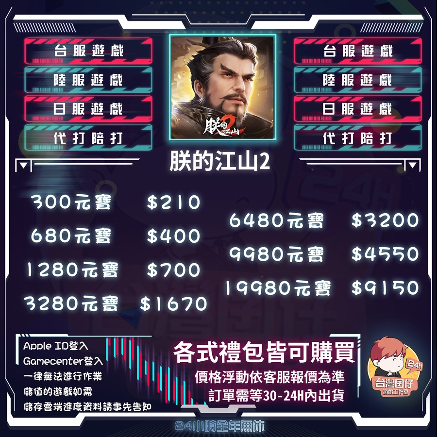 代儲【300元寶=210元】 🏆朕的江山2代儲🏆24H客服🔥台灣囝仔🔥退刷包賠