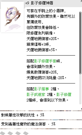道具 【戒靈】 +9 影子修羅神盾 對無屬性攻擊抗性5%/受毒屬魔物魔法傷害請先小窗確認