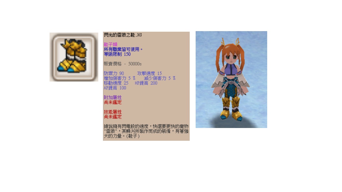 道具 元元.閃光的雷狼鞋子XG+0.(槍手.刺客.冰魔.全職業)超人.惡靈.增傷
