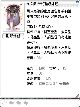 +9幻影茉莉雅娜斗蓬[1] LUK+5,FLEE+20。