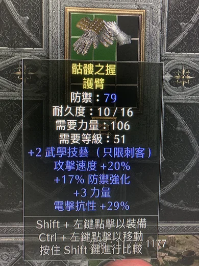 非天梯 刺客手套 2武學技能 20攻速 3力量 29電抗