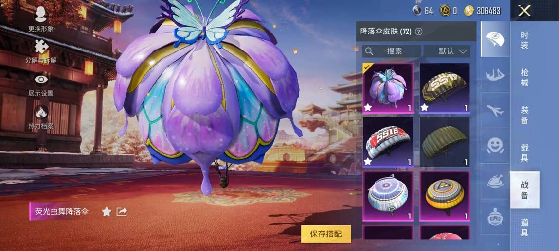 太空嘟嘟飛行器,閃光銀龍飛行器,熒光蟲舞降落傘,旋轉彩虹降落傘,彩虹甜喵降落傘,環太平洋降落傘,太空嘟嘟降落傘,藍莓炮彈降落傘,垂柳戲鴨降落傘,暖熊萌萌降落傘,銀刃賽羅降落傘,夢幻火箭降落傘,PEL轟鳴競夢者降落傘,王牌四分衛降落傘,葫蘆兄弟降落傘