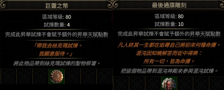 道具 PoE2👌巨靈之幣(昇華天賦)最後通牒雕刻(混沌神殿試煉)勝利之運怯懦致命之運