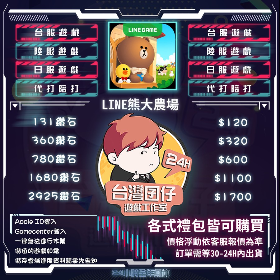 代儲【131鑽石=120元】 🏆LINE 熊大農場代儲🏆24H客服🔥台灣囝仔🔥退刷包賠