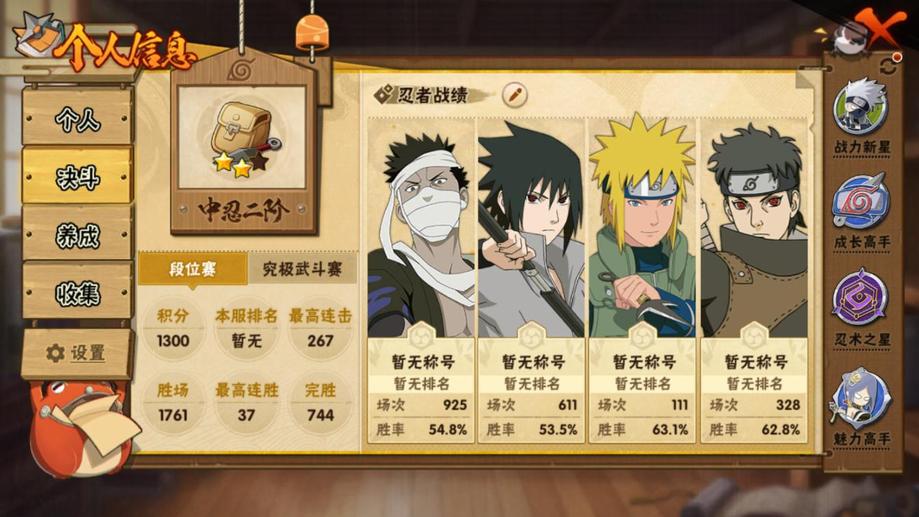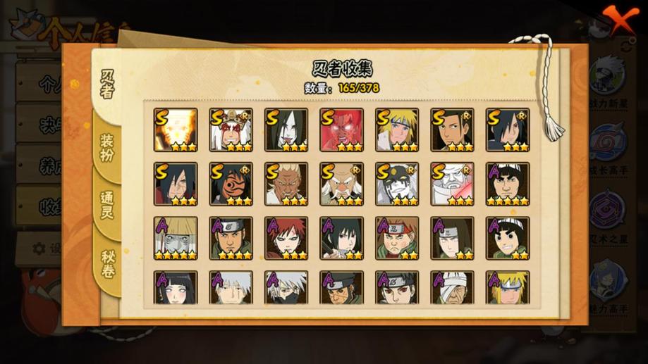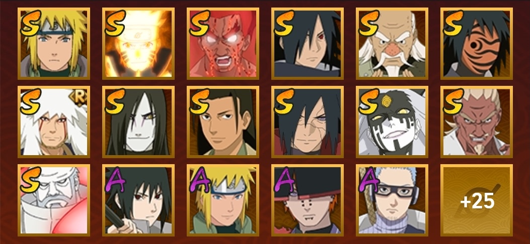 水門,博人傳桃式,忍戰大野木,金式,大蛇丸,死門凱,創立柱間,紅夜帶土,九喇嘛鳴人,穢土解斑,創立斑,舞之豪傑自來也,忍戰艾,青年艾,青年水門,迪達拉,曉大蛇丸,死司飛段,鬼鮫,凱,漂泊六道,萬花筒卡卡西,奇拉比,忍戰丁次,近松十人衛千代,忍戰寧次,疾風傳我愛羅,桃式顯現博人,蠍,穢土阿斯瑪,阿斯瑪,止水,鼬,博人傳木葉丸,須佐佐助,斗篷兜,最終章雛田,真容卡卡西,夏日鼬,團藏,六代水影,青年長門