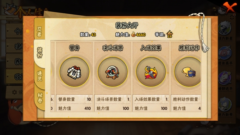 忍戰櫻,須佐卡卡西,舞之豪傑自來也,水門,穢土柱間,穢土解斑,紅夜帶土,忍戰艾,天道佩恩,凱,阿斯瑪,鬼鮫,疾風傳我愛羅,疾風傳咒印佐助,百豪櫻,忍戰丁次,忍戰寧次,忍戰李,最終章雛田,真容卡卡西,新春止水,近松十人衛千代,蠍,鼬,迪達拉,死司飛段,暴怒帶土,桃式顯現博人,六代水影