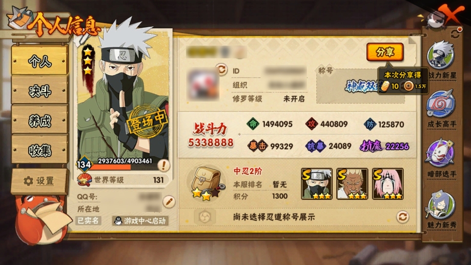 火影忍者ios安卓雙區號,iosq區是有卡卡西這個,2萬多金幣,800多點券,創立柱間和天道馬上出,王者榮耀馬上v8一個榮耀典藏