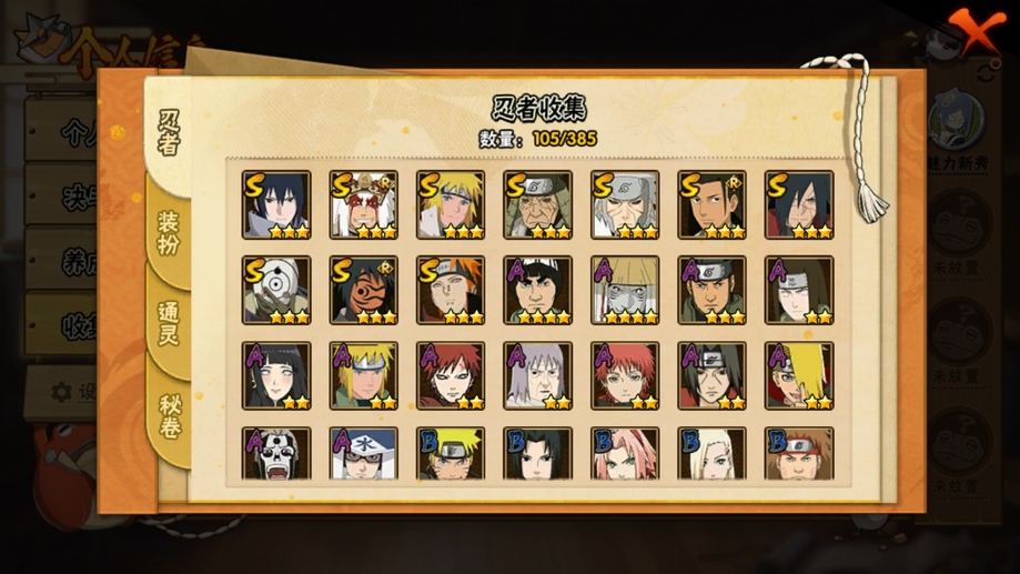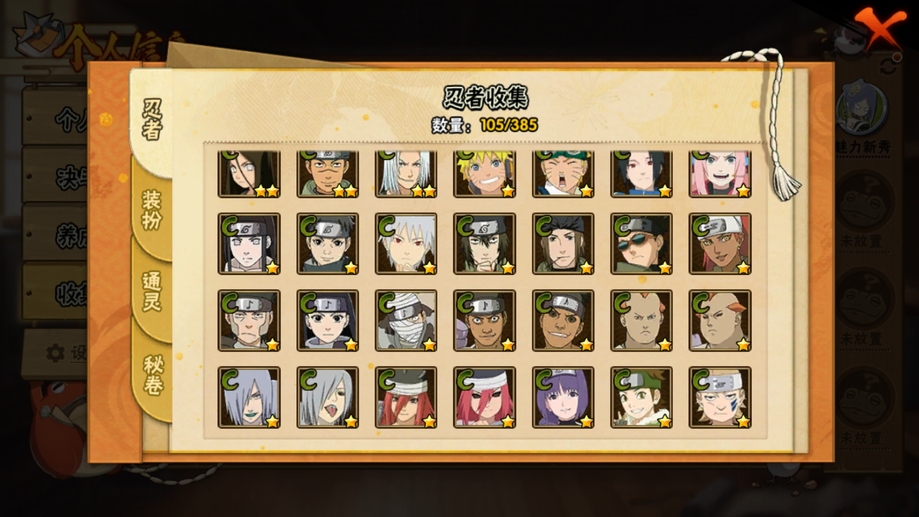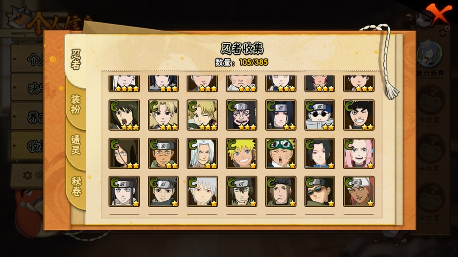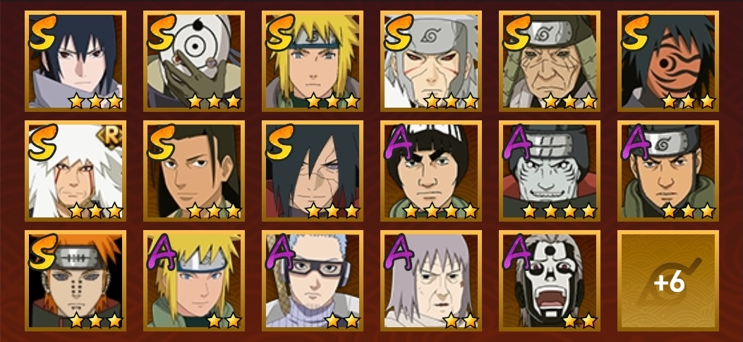 永恆萬花筒佐助,白面具,水門,穢土扉間,穢土日斬,紅夜帶土,舞之豪傑自來也,創立柱間,穢土解斑,天道佩恩,凱,鬼鮫,阿斯瑪,青年水門,死司飛段,六代水影,忍戰寧次,最終章雛田,疾風傳我愛羅,近松十人衛千代,蠍,鼬,迪達拉