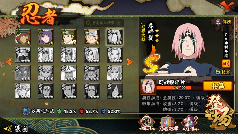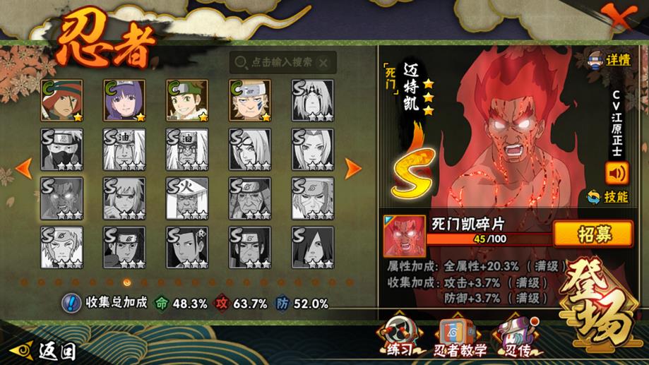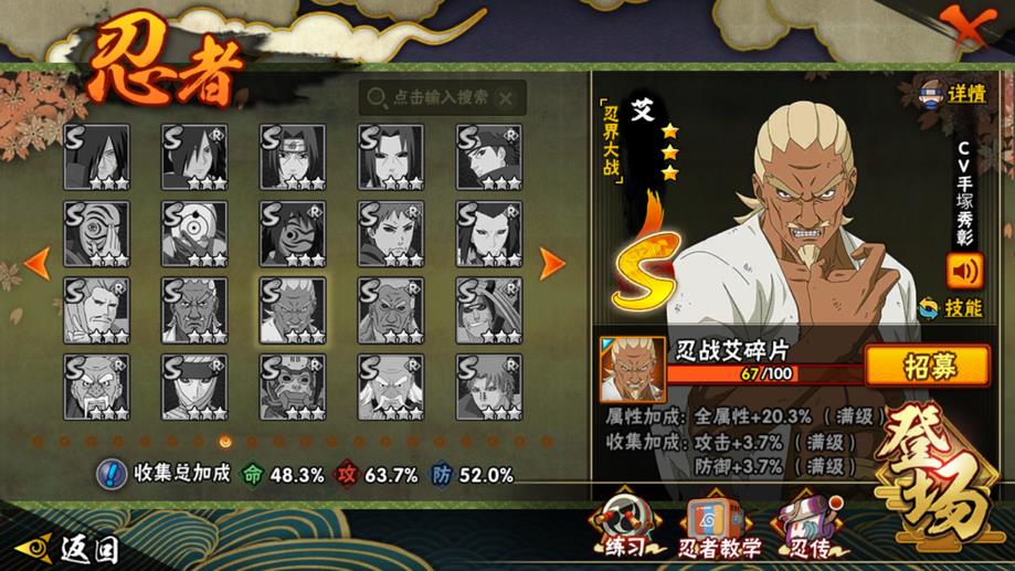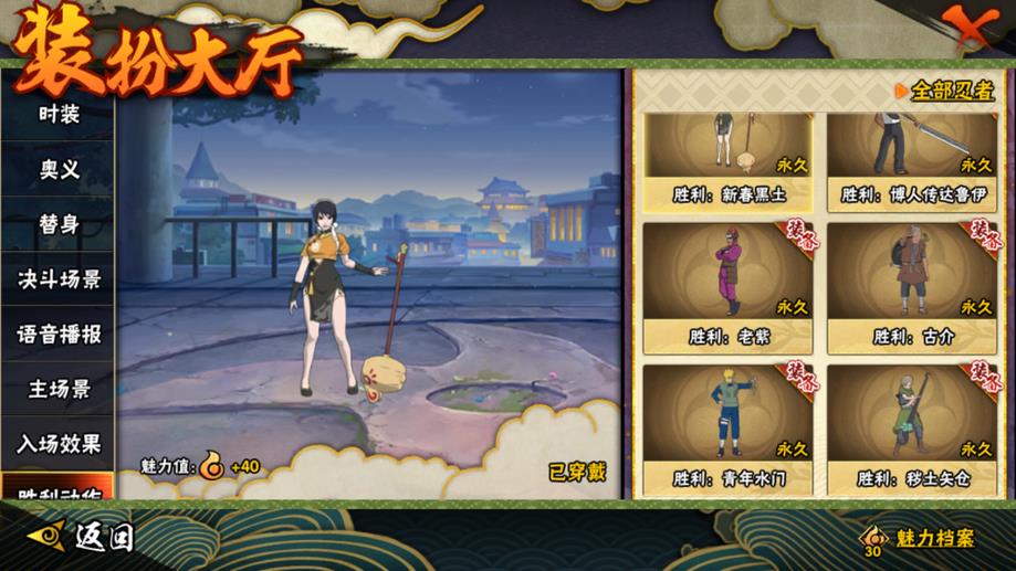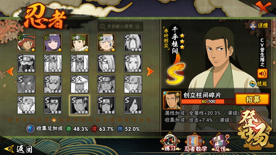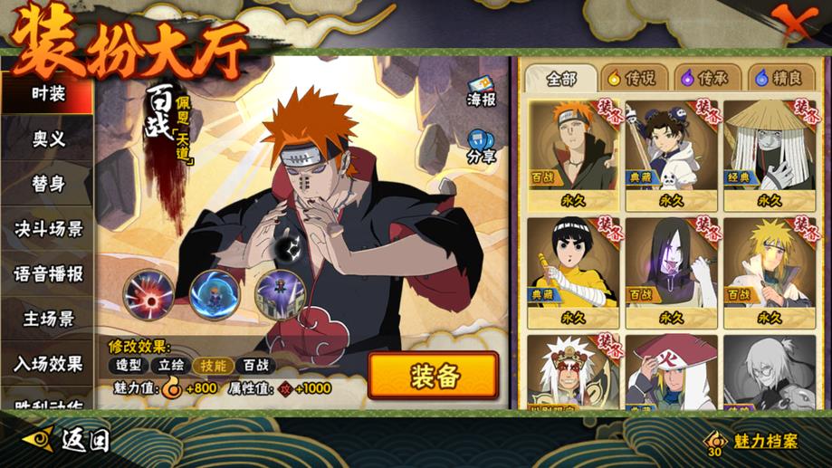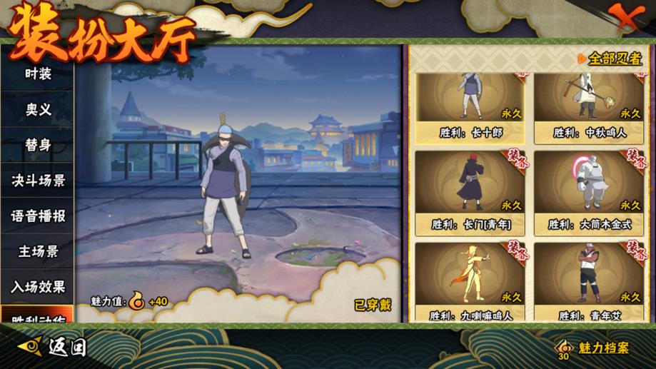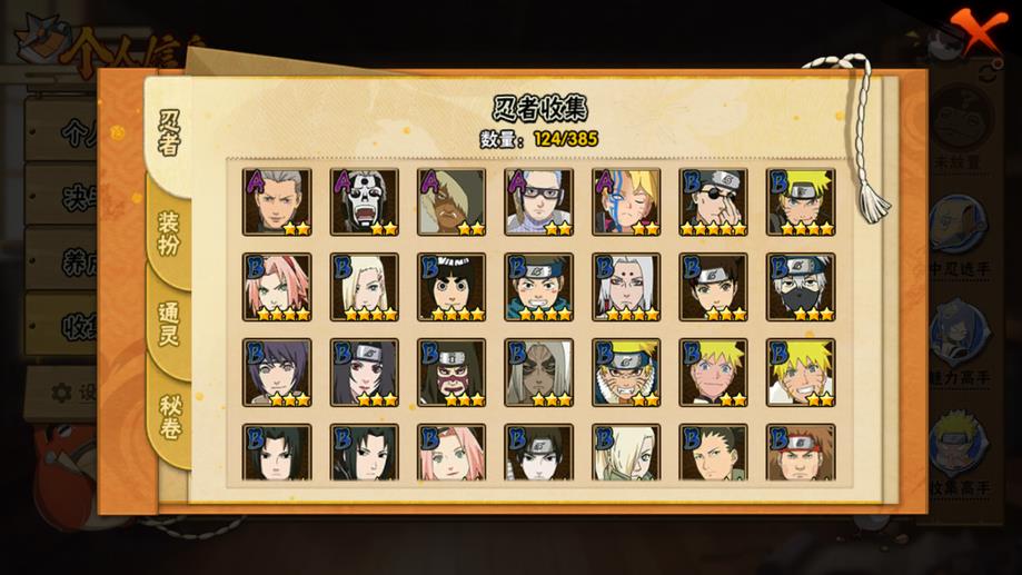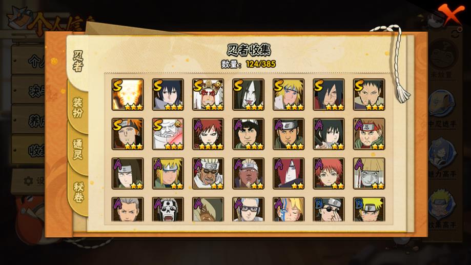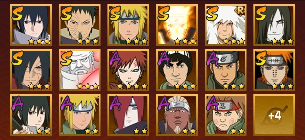 九喇嘛鳴人,永恆萬花筒佐助,舞之豪傑自來也,大蛇丸,水門,穢土解斑,忍戰帶土,天道佩恩,金式,疾風傳我愛羅,凱,阿斯瑪,須佐佐助,忍戰丁次,忍戰寧次,青年水門,奇拉比,青年艾,青年長門,蠍,鬼鮫