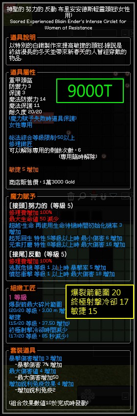 道具 👑角落小舖👑爆箭範圍20+終射冷卻17 布里安安德斯輕靈頭冠(女用)👒