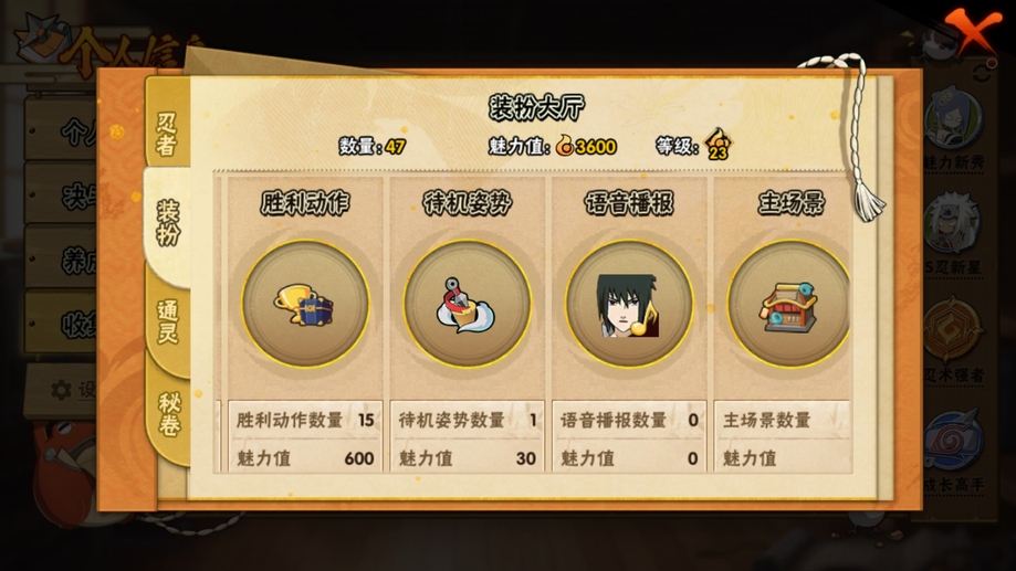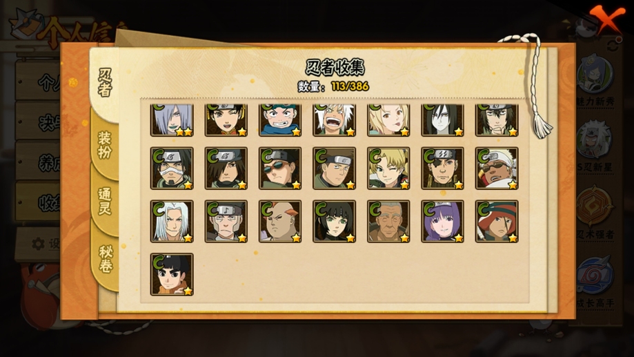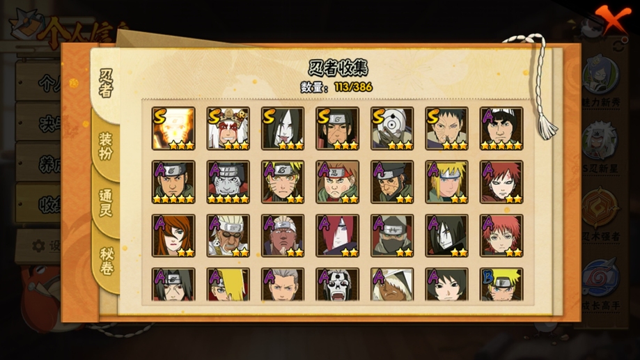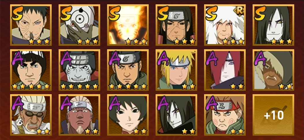 鼬,迪達拉,飛段,死司飛段,博人傳達魯伊,博人傳黑土,九喇嘛鳴人,舞之豪傑自來也,大蛇丸,穢土柱間,白面具,忍戰帶土,凱,阿斯瑪,鬼鮫,仙人鳴人,忍戰丁次,穢土阿斯瑪,青年水門,疾風傳我愛羅,五代水影,忍戰奇拉比,青年艾,青年長門,角都,曉大蛇丸,蠍