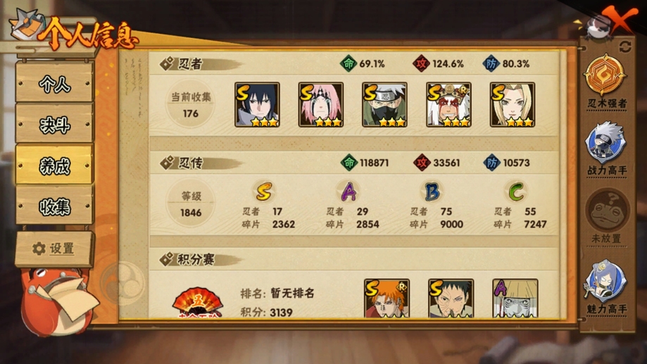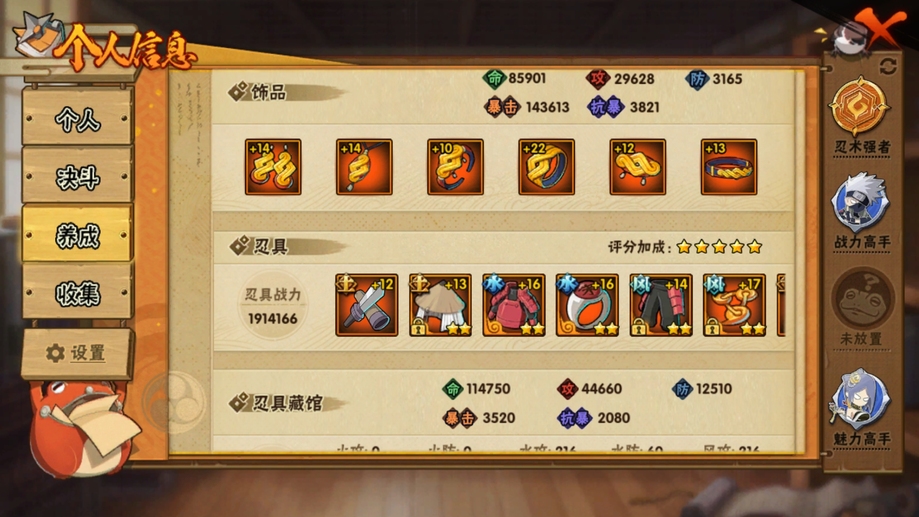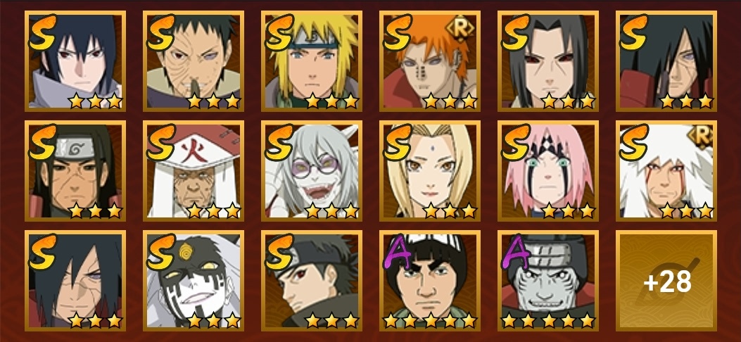 死司飛段,暴怒帶土,桃式顯現博人,博人傳黑土,疾風傳我愛羅,九尾鳴人,萬花筒佐助,須佐佐助,忍戰丁次,忍戰寧次,忍戰李,青年水門,忍戰我愛羅,近松十人衛千代,武士再不斬,忍戰奇拉比,漂泊扉間,俠隱兜,不緣,青年長門,鼬,新春鼬,迪達拉,穢土迪達拉,飛段,永恆萬花筒佐助,忍戰櫻,舞之豪傑自來也,綱手,水門,三代火影,穢土柱間,穢土斑,穢土解斑,穢土鼬,須佐止水,忍戰帶土,天道佩恩,天道超,仙人兜,博人傳桃式,凱,阿斯瑪,鬼鮫,蠍