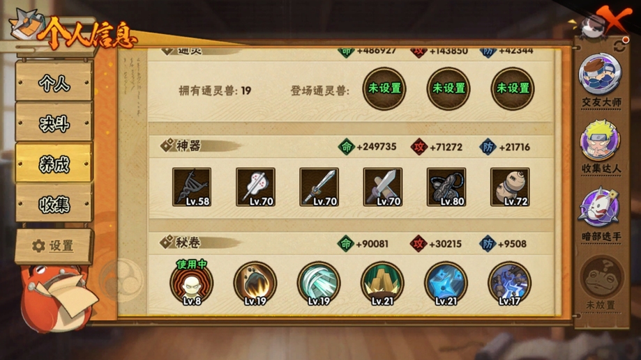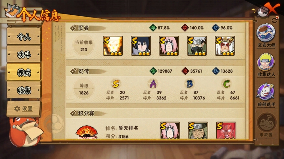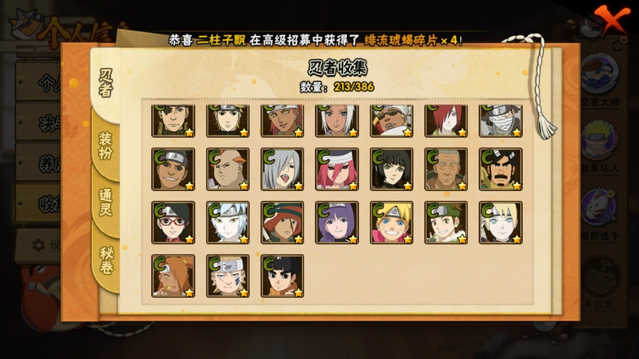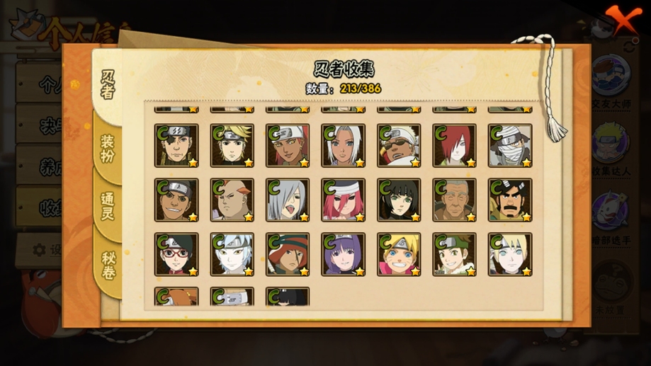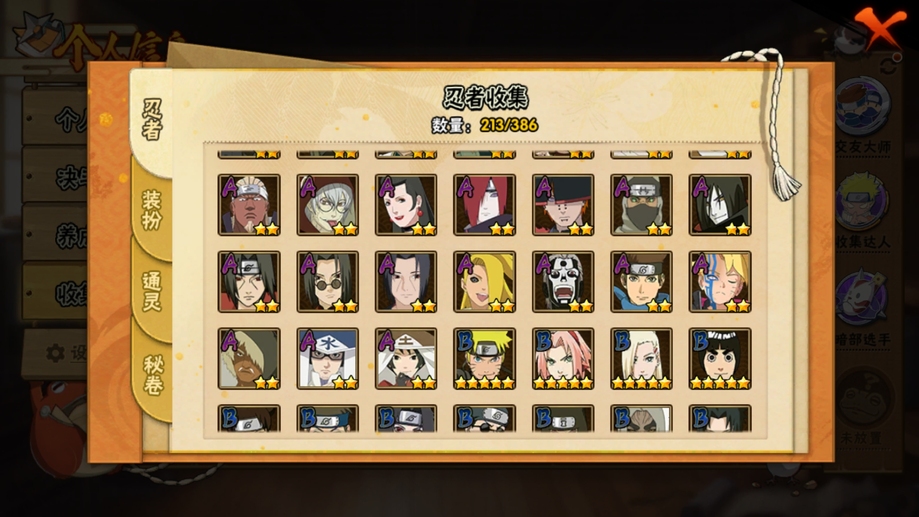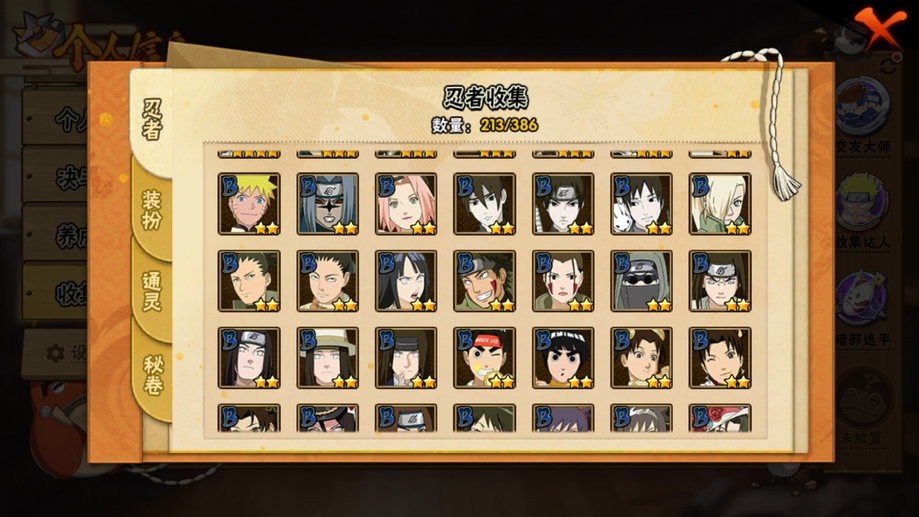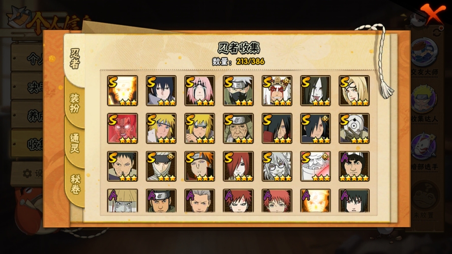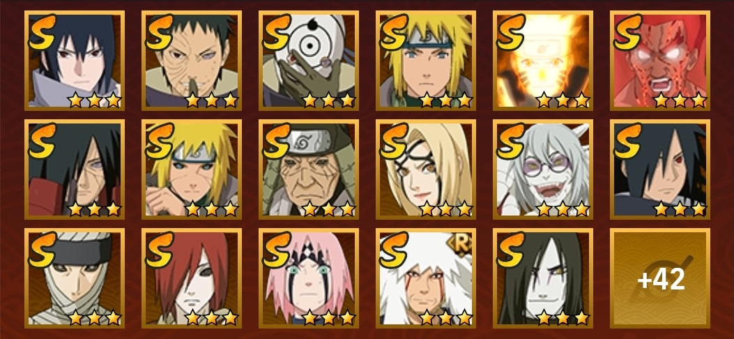 鬼鮫,阿斯瑪,飛段,疾風傳我愛羅,蠍,九尾鳴人,萬花筒佐助,須佐佐助,百豪櫻,忍戰丁次,忍戰寧次,忍戰李,最終章雛田,真容卡卡西,萬花筒卡卡西,穢土阿斯瑪,新春止水,青年水門,忍戰我愛羅,近松十人衛千代,奇拉比,九喇嘛鳴人,永恆萬花筒佐助,忍戰櫻,舞之豪傑自來也,大蛇丸,百豪綱手,死門凱,水門,穢土水門,穢土日斬,穢土斑,創立斑,白面具,忍戰帶土,二代土影,天道佩恩,穢土長門,仙人兜,金式,凱,青年艾,斗篷兜,不緣,青年長門,漂泊六道,地怨虞角都,曉大蛇丸,鼬,新春鼬,夏日鼬,穢土迪達拉,死司飛段,博人傳木葉丸,桃式顯現博人,博人傳達魯伊,六代水影,博人傳黑土,須佐卡卡西