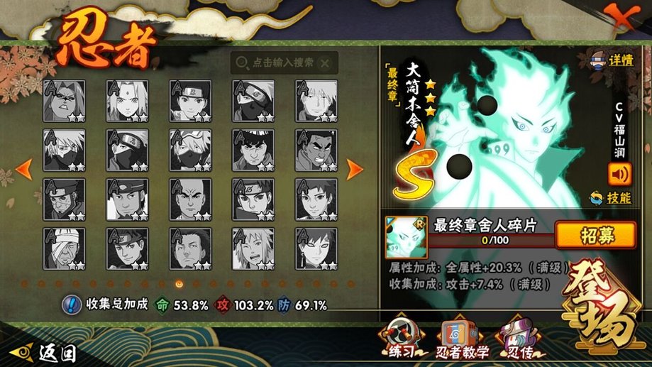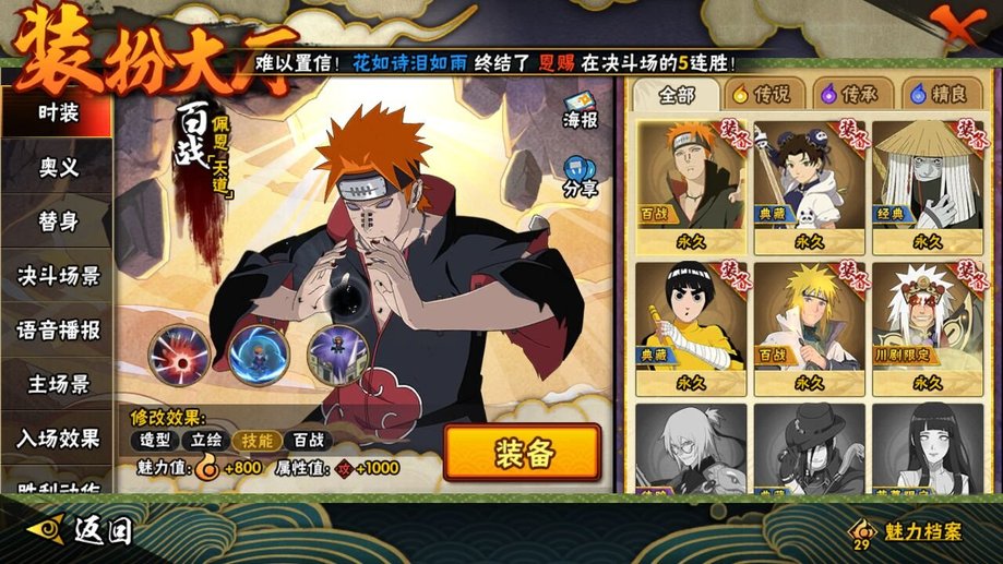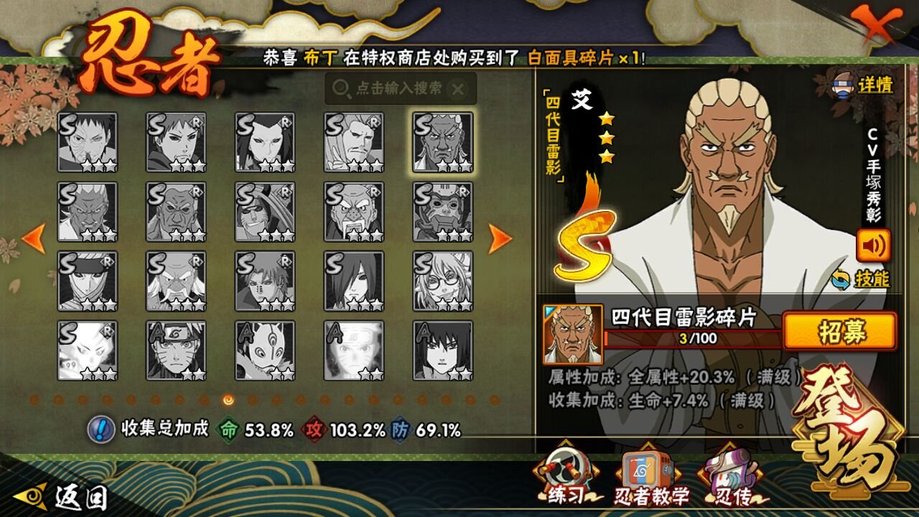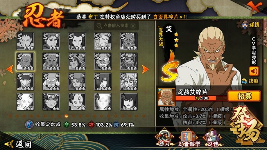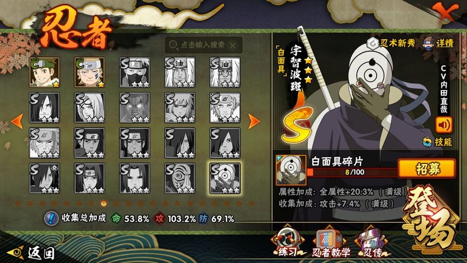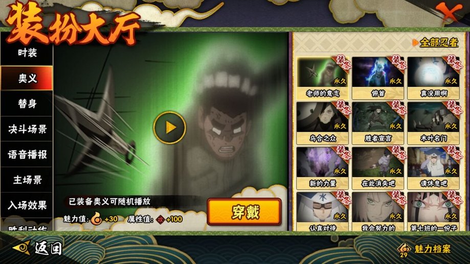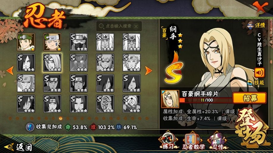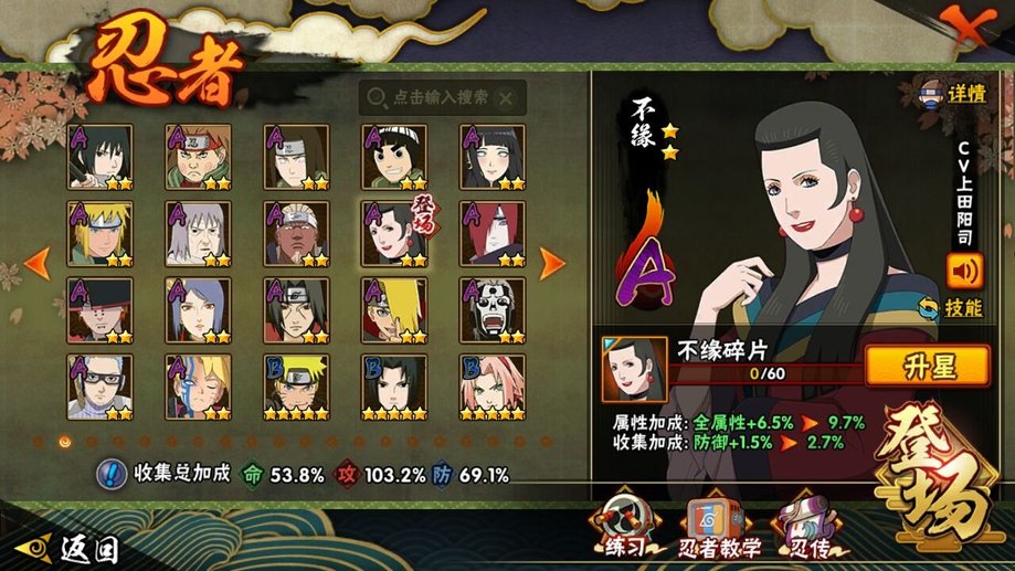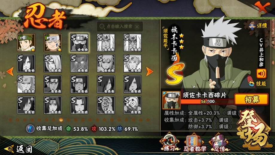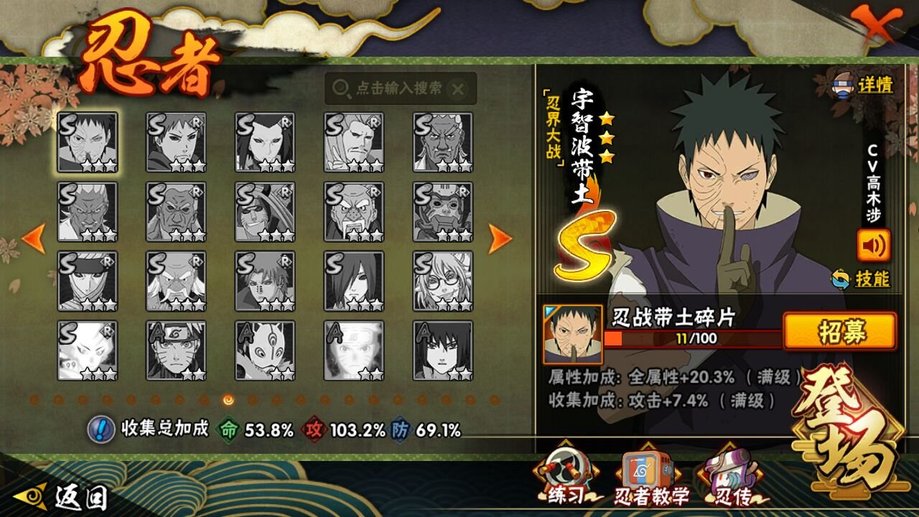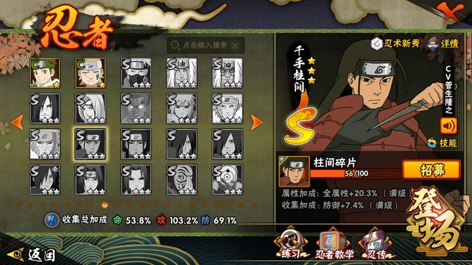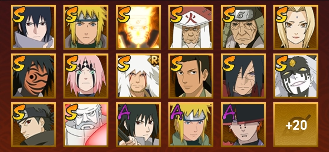 綱手,九喇嘛鳴人,永恆萬花筒佐助,忍戰櫻,舞之豪傑自來也,水門,三代火影,穢土日斬,創立柱間,穢土解斑,須佐止水,紅夜帶土,天道佩恩,博人傳桃式,金式,阿斯瑪,凱,鬼鮫,蠍,疾風傳我愛羅,最終章雛田,青年艾,青年長門,鼬,須佐佐助,忍戰寧次,漂泊六道,迪達拉,忍戰李,死司飛段,近松十人衛千代,青年水門,新春小南,六代水影,不緣,桃式顯現博人,忍戰丁次