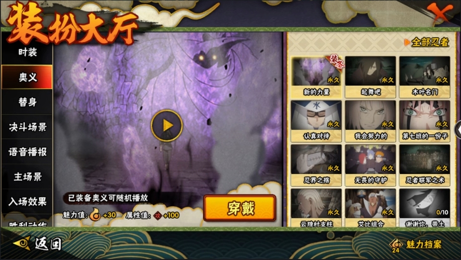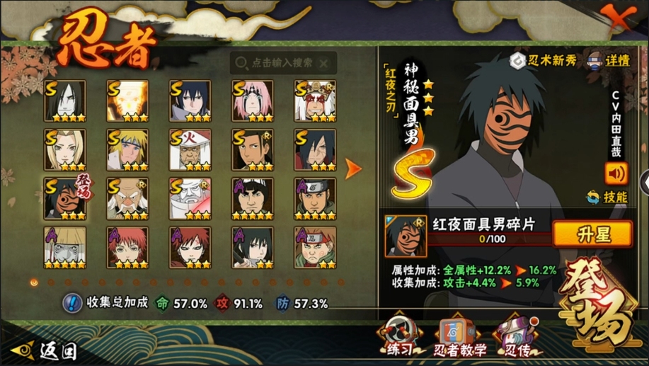大蛇丸,九喇嘛鳴人,永恆萬花筒佐助,忍戰櫻,舞之豪傑自來也,綱手,水門,三代火影,創立柱間,穢土解斑,紅夜帶土,忍戰大野木,金式