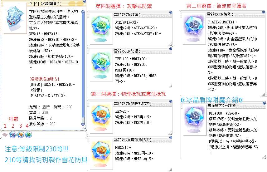 ❤攻擊推薦:+9N~12C冰晶盾牌(攻擊、物理抵抗力、智能)