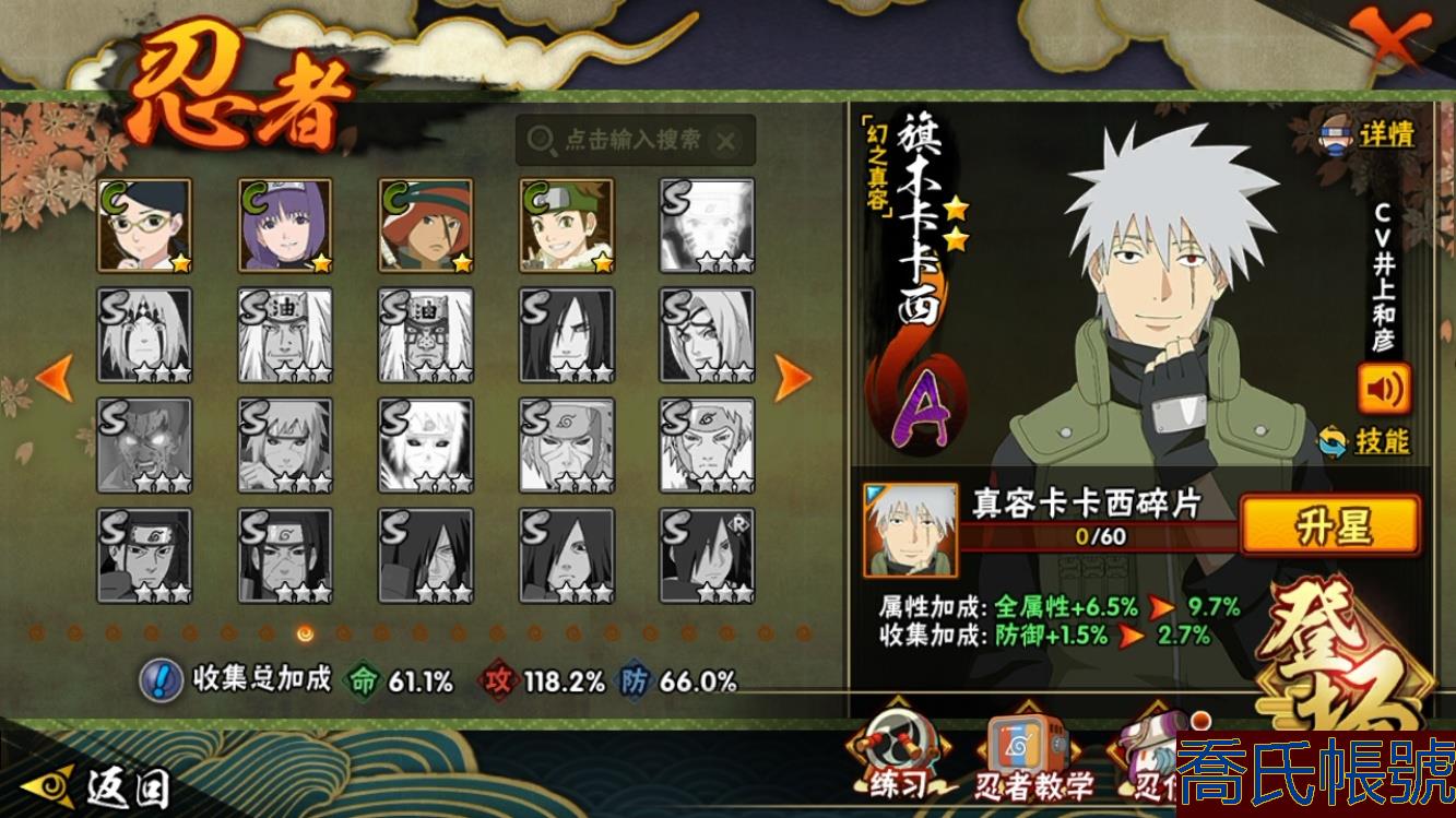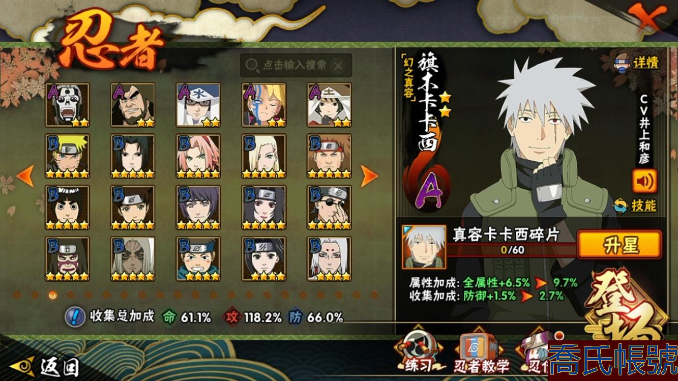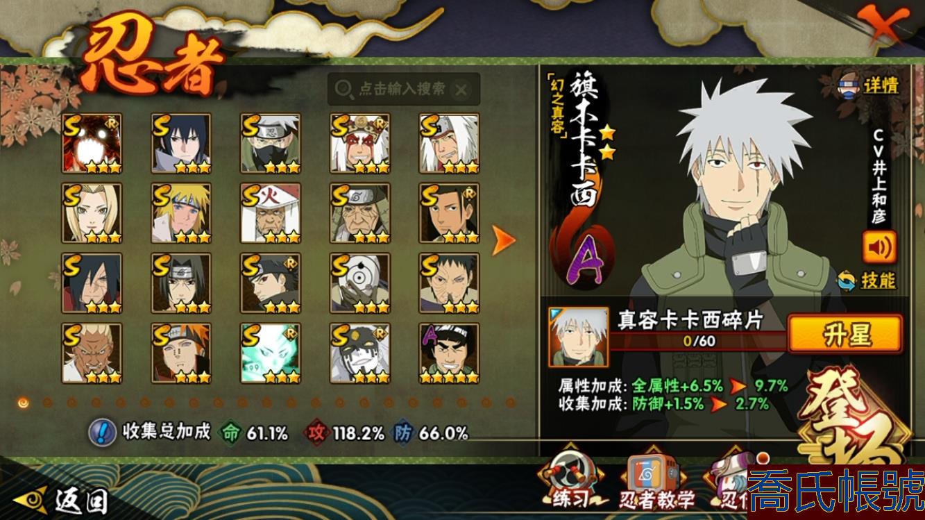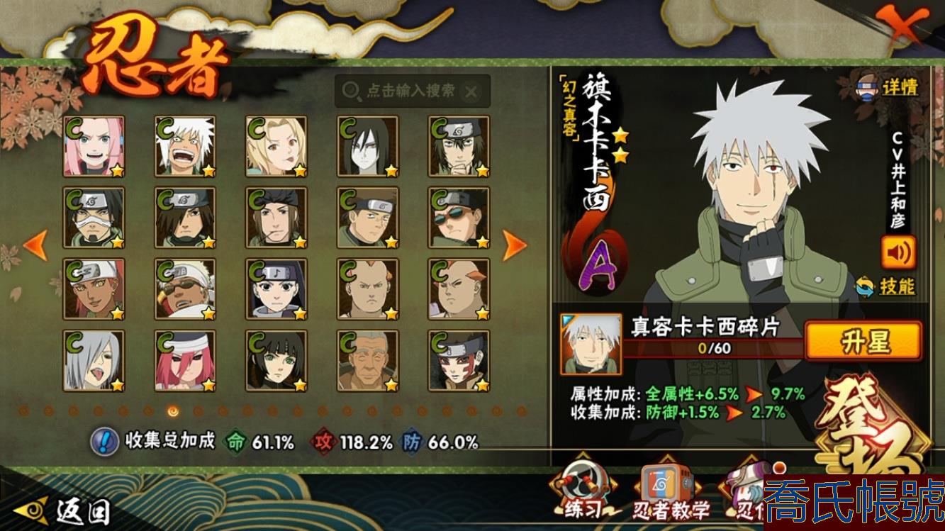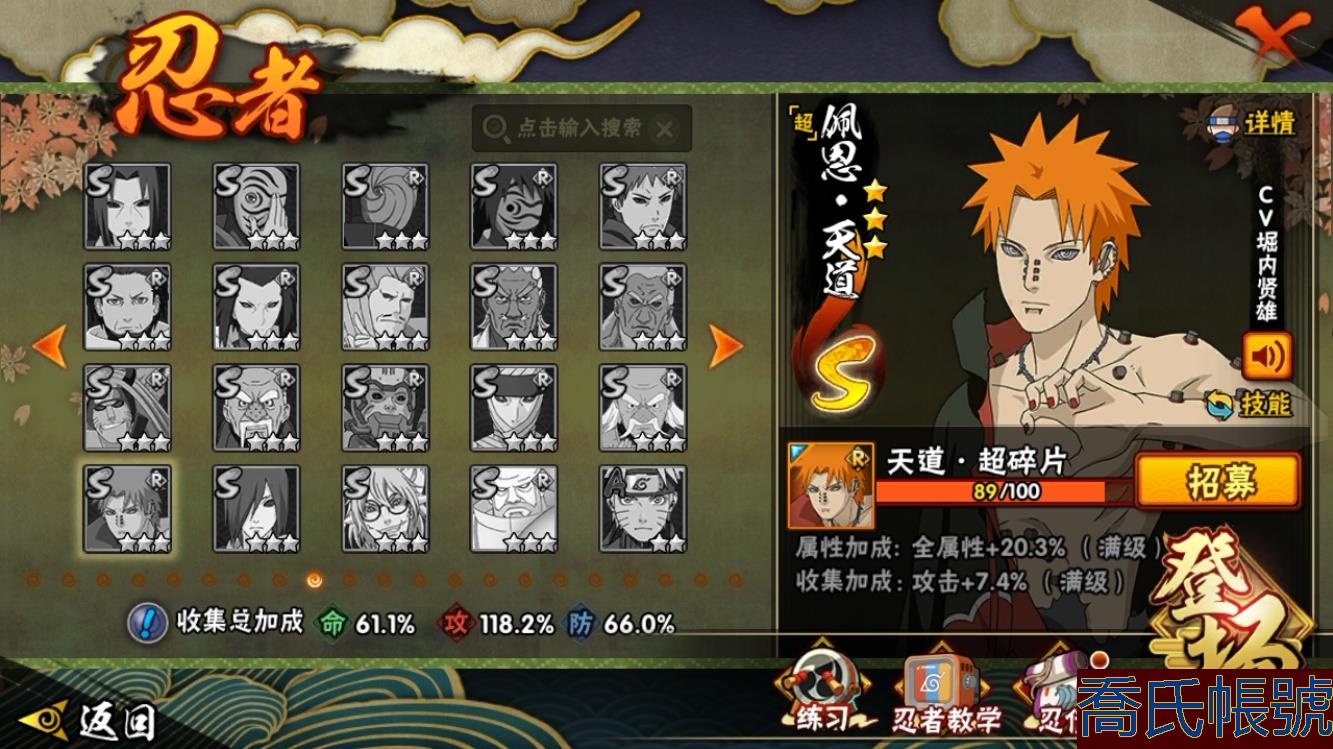 【OBHCRPR213242】戰鬥力:1073W+;段位:中忍2階;本服排名:194;戰區排名:未上榜;VIPM1級;S忍19個;A忍25個;通靈獸19個;S忍:須佐能乎旗木卡卡西,穢土轉生解宇智波斑,須佐能乎宇智波止水,綱手,永恆萬花筒宇智波佐助,須佐能乎宇智波鼬,暴怒第六尾漩渦鳴人,忍界大戰艾,波風水門,大筒木桃式,猿飛日斬,忍界大戰宇智波帶土,天道佩恩,白面具宇智波斑,傳說中的三忍自來也,穢土轉生猿飛日斬,木葉創立千手柱間,最終章大筒木舍人,舞之豪傑自來也;A忍:邁特凱,猿飛阿斯瑪,幹柿鬼鮫,疾風傳我愛羅,蠍,萬花筒寫輪眼宇智波佐助,須佐能乎宇智波佐助,宇智波泉奈,忍界大戰秋道丁次,忍界大戰日向寧次,忍界大戰李洛克,最終章日向雛田,幻之真容旗木卡卡西,近松十人衛千代,穢土轉生桃地再不斬,忍界大戰土臺,緋流琥蠍,宇智波鼬,迪達拉,飛段,死司憑血飛段,羈絆神農,六代目水影長十郎,桃式顯現漩渦博人,四代目土影黑土;通靈獸:忍犬,藍蛇,蛤蟆吉,砂之守鶴,忍龜,鐮鼬,猿魔,山椒魚,蛞蝓,蜃,蛤蟆仙人,鮫鯊,蛤蟆龍,辛牙,蛤蟆健,烏鴉,熊貓,蛤蟆廣,夢貘;時裝:百戰波風水門,百戰宇智波鼬須佐能乎,蜀面豪傑舞之豪傑自來也,百戰佩恩天道,太極靈韻日向花火武當宗師,睿勇新星千手扉間少年,驚雷掠影達魯伊五代目雷影,緋櫻綻放春野櫻百豪,熊貓少女天天峨眉宗師,風之守護我愛羅忍界大戰,烈土霓裳黑土四代目土影,血霧怪人幹柿鬼鮫,智勇記者宇智波佐良娜,土之固守大野木三代目土影,飛瀑流泉長十郎六代目水影;【721】【蘋果QQ】