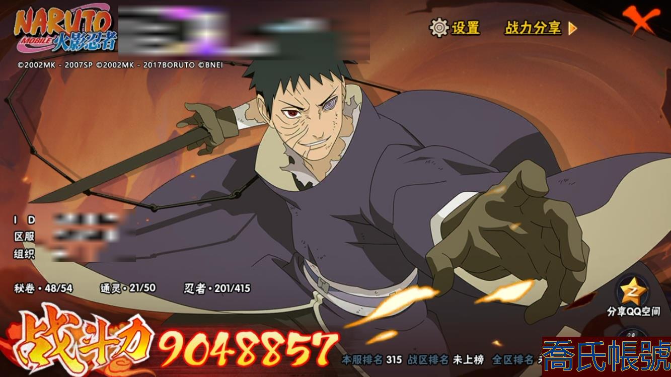 【OBHCRPR095342】戰鬥力:904W+;段位:中忍2階;本服排名:315;戰區排名:未上榜;VIP13級;S忍29個;A忍47個;通靈獸21個;S忍:穢土轉生宇智波斑,死門邁特凱,大筒木桃式,四代目風影羅砂,紅夜之刃神秘面具男,大筒木金式,忍界大戰艾,忍界大戰大野木,穢土轉生長門,舞之豪傑自來也,大蛇丸,天道佩恩,穢土轉生千手柱間,穢土轉生千手扉間,白面具宇智波斑,穢土轉生解宇智波斑,波風水門,須佐能乎宇智波鼬,二代目土影無,木葉創立宇智波斑,九喇嘛連結漩渦鳴人,忍界大戰春野櫻,永恆萬花筒宇智波佐助,穢土轉生猿飛日斬,忍界大戰宇智波帶土,傳說中的三忍自來也,穢土轉生波風水門,穢土轉生宇智波鼬,超佩恩天道;A忍:邁特凱,猿飛阿斯瑪,疾風傳我愛羅,幹柿鬼鮫,飛段,蠍,死司憑血飛段,仙人模式漩渦鳴人,忍者之路神秘面具男,九尾查克拉漩渦鳴人,萬花筒寫輪眼宇智波佐助,須佐能乎宇智波佐助,疾風傳咒印宇智波佐助,宇智波泉奈,忍界大戰秋道丁次,忍界大戰李洛克,最終章日向雛田,幻之真容旗木卡卡西,忍界大戰邁特凱,新春限定宇智波止水,新春限定波風水門,青年波風水門,忍界大戰我愛羅,近松十人衛千代,五代目水影照美冥,桃地再不斬,穢土轉生桃地再不斬,忍界大戰奇拉比,青年艾,俠隱江湖綱手,漂泊武士千手扉間,不風,青年長門,漂泊浪客佩恩六道,漂泊浪客小南,穢土轉生角都,曉大蛇丸,緋流琥蠍,宇智波鼬,迪達拉,穢土轉生迪達拉,暴怒宇智波帶土,羈絆神農,桃式顯現漩渦博人,六代目水影長十郎,五代目雷影達魯伊,四代目土影黑土;通靈獸:忍犬,藍蛇,蛤蟆吉,忍龜,砂之守鶴,鐮鼬,猿魔,熊貓,山椒魚,蜃,蛤蟆仙人,鮫鯊,蛞蝓,蛤蟆健,烏鴉,蛤蟆龍,蛞蝓俠隱江湖,蛤蟆廣,萬蛇,夢貘;時裝:百戰大蛇丸,百戰佩恩天道,百戰波風水門,蜀面豪傑舞之豪傑自來也,百戰宇智波鼬須佐能乎,太極靈韻日向花火武當宗師,冷玉豪情綱手俠隱江湖,龍的傳人李洛克截拳宗師,緋櫻綻放春野櫻百豪,血霧怪人幹柿鬼鮫,剎那的藝術迪達拉,編織虛實宇智波鼬,傳說的光芒波風水門,驕陽翠羽照美冥夏日泳裝;【532】【蘋果QQ】可轉生