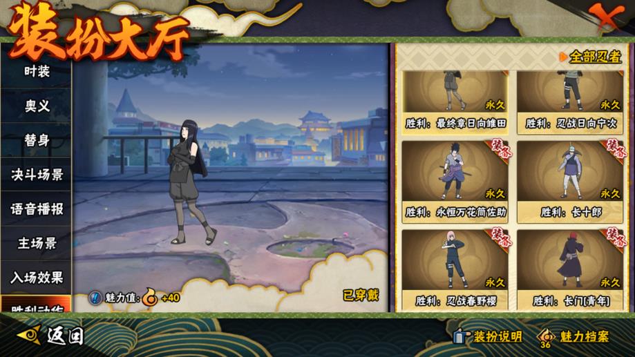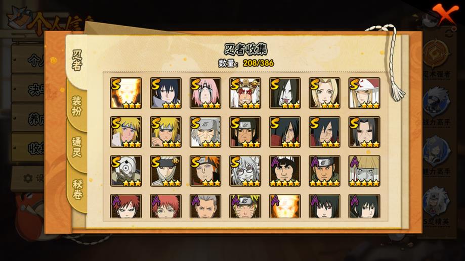 九喇嘛鳴人,永恆萬花筒佐助,忍戰櫻,舞之豪傑自來也,大蛇丸,綱手,百豪綱手,水門,穢土水門,穢土扉間,穢土柱間,穢土斑,穢土解斑,穢土鼬,白面具,二代土影,天道佩恩,仙人兜,凱,阿斯瑪,鬼鮫,疾風傳我愛羅,蠍,飛段,仙人鳴人,九尾鳴人,萬花筒佐助,須佐佐助,百豪櫻,忍戰丁次,忍戰寧次,忍戰天天,最終章雛田,止水,新春止水,新春水門,青年水門,忍戰我愛羅,近松十人衛千代,五代水影,忍戰奇拉比,斗篷兜,不風,青年長門,小南,泳裝小南,新春小南,曉大蛇丸,鼬,新春鼬,迪達拉,穢土迪達拉,死司飛段,暴怒帶土,博人傳木葉丸,桃式顯現博人,六代水影,博人傳黑土