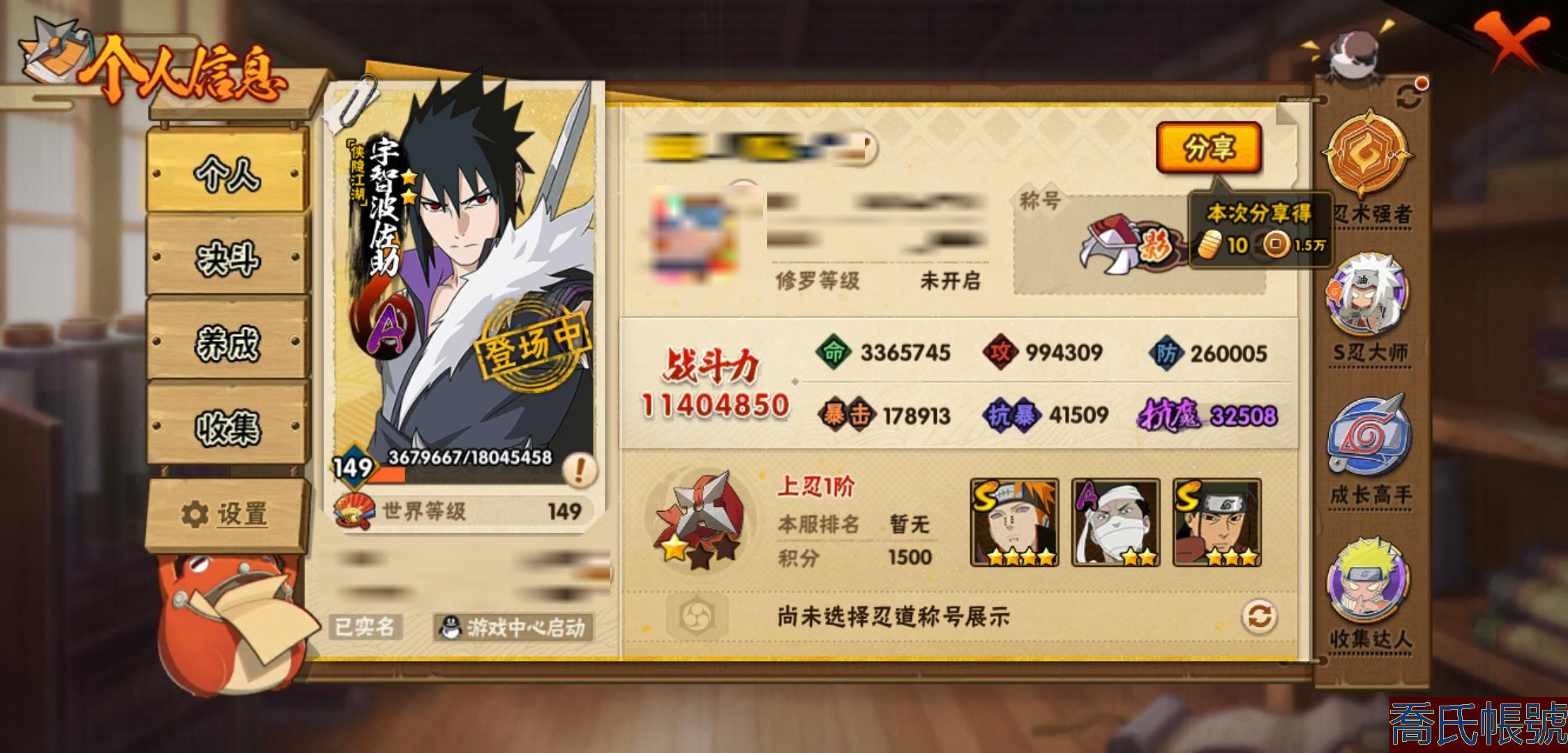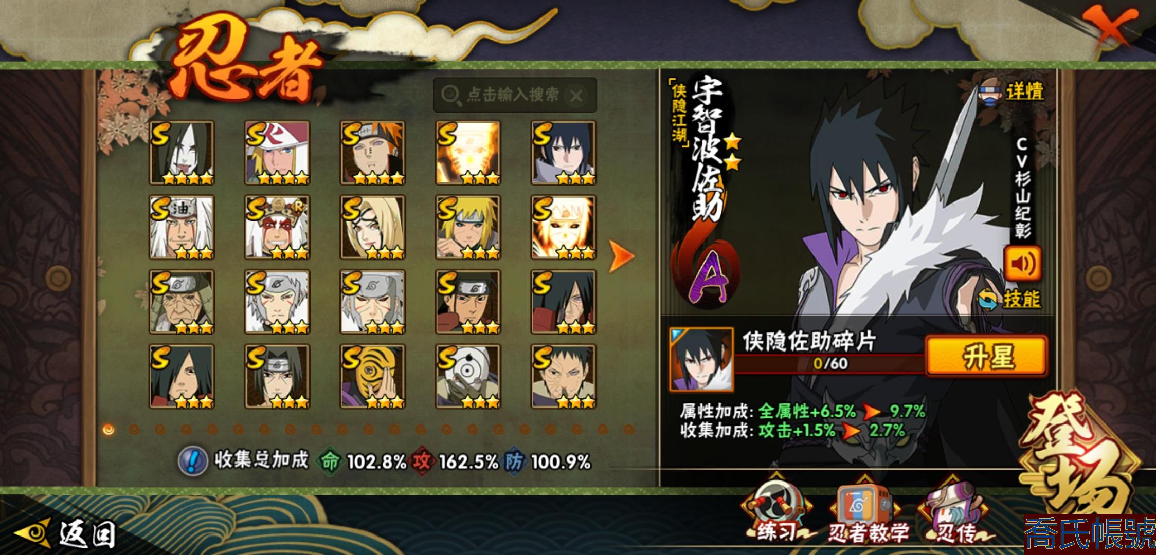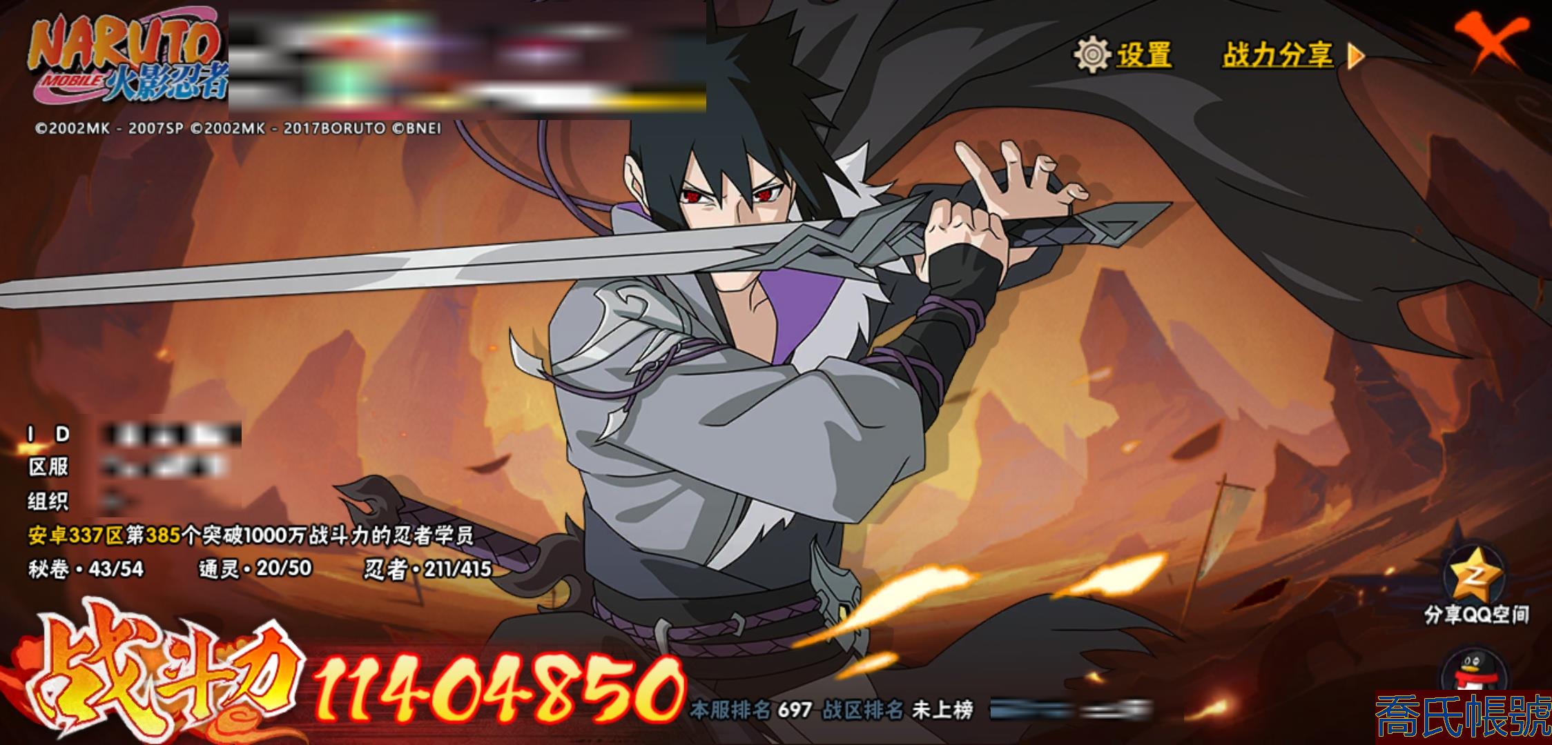 【OBHMWEL884742】戰鬥力:1140W+;段位:上忍1階;本服排名:697;戰區排名:未上榜;VIP12級;S忍24個;A忍44個;通靈獸20個;S忍:大蛇丸(4星),波風水門(4星),天道佩恩(4星),九喇嘛連結漩渦鳴人,永恆萬花筒宇智波佐助,自來也,舞之豪傑自來也,百豪綱手,穢土轉生波風水門,九喇嘛連結波風水門,穢土轉生猿飛日斬,千手扉間,穢土轉生千手扉間,千手柱間,穢土轉生宇智波斑,宇智波斑,須佐能乎宇智波鼬,神秘面具男,白面具宇智波斑,忍界大戰宇智波帶土,紅夜之刃神秘面具男,四代目雷影艾,穢土轉生金角銀角,穢土轉生長門;A忍:邁特凱(5星),猿飛阿斯瑪(5星),蠍(5星),幹柿鬼鮫(5星),疾風傳我愛羅(4星),飛段(4星),忍界大戰我愛羅(3星),五代目水影照美冥(3星),仙人模式漩渦鳴人,忍者之路神秘面具男,九尾查克拉漩渦鳴人,萬花筒寫輪眼宇智波佐助,須佐能乎宇智波佐助,俠隱江湖宇智波佐助,宇智波泉奈,百豪春野櫻,忍界大戰秋道丁次,忍界大戰李洛克,萬花筒寫輪眼旗木卡卡西,宇智波止水,新春限定宇智波止水,志村團藏,新春限定波風水門,青年波風水門,近松十人衛千代,穢土轉生桃地再不斬,漂泊武士桃地再不斬,奇拉比,青年艾,半蛇斗篷藥師兜,青年長門,小南,新春限定小南,曉大蛇丸,宇智波鼬,新春限定宇智波鼬,迪達拉,穢土轉生迪達拉,死司憑血飛段,俠隱江湖大野木,火之意志繼承者卑留呼,猿飛木葉丸,六代目水影長十郎,四代目土影黑土;通靈獸:忍犬,藍蛇,蛤蟆吉,忍龜,鐮鼬,猿魔,蛞蝓,山椒魚,蜃,蛤蟆仙人,鮫鯊,蛤蟆健,烏鴉,熊貓,蛤蟆龍,蛤蟆廣,夢貘,砂之守鶴,二尾又旅,鷹;時裝:百戰佩恩天道,百戰大蛇丸,蜀面豪傑舞之豪傑自來也,百戰波風水門,傳說的光芒波風水門,龍的傳人李洛克截拳宗師,可愛睡衣漩渦鳴人,飛瀑流泉長十郎六代目水影,烈土霓裳黑土四代目土影;【337】V12可轉生有二次,準26s,穢土半藏81片無61片綱手79片,俠隱佐助氪金a有10來個,退遊一口價超值