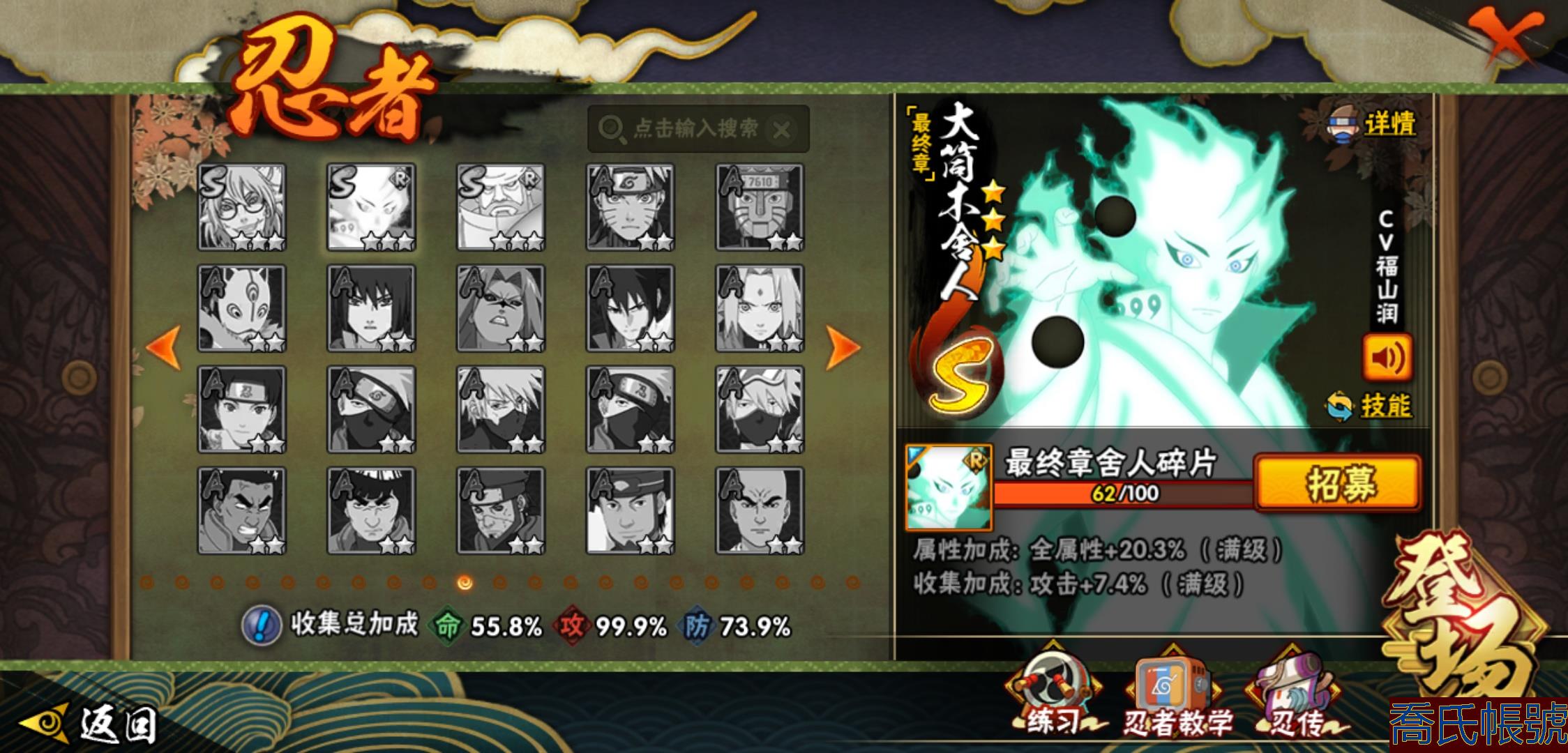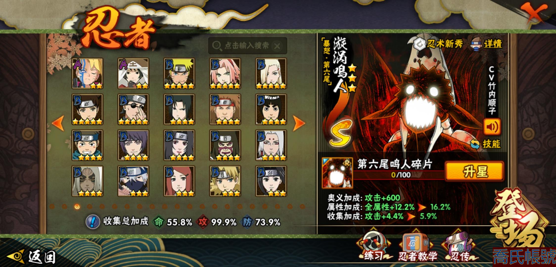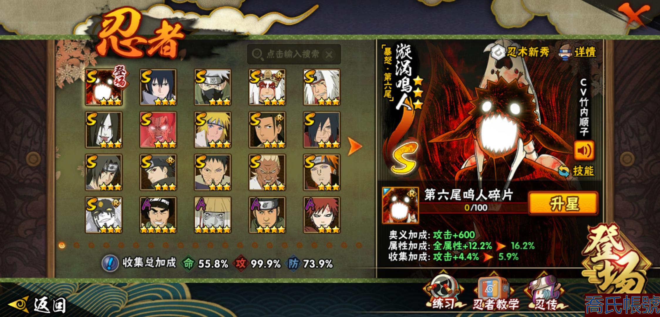【11等】VIPV8級;S忍18個;A忍41個;通靈獸18個;S忍:傳說中的三忍自來也