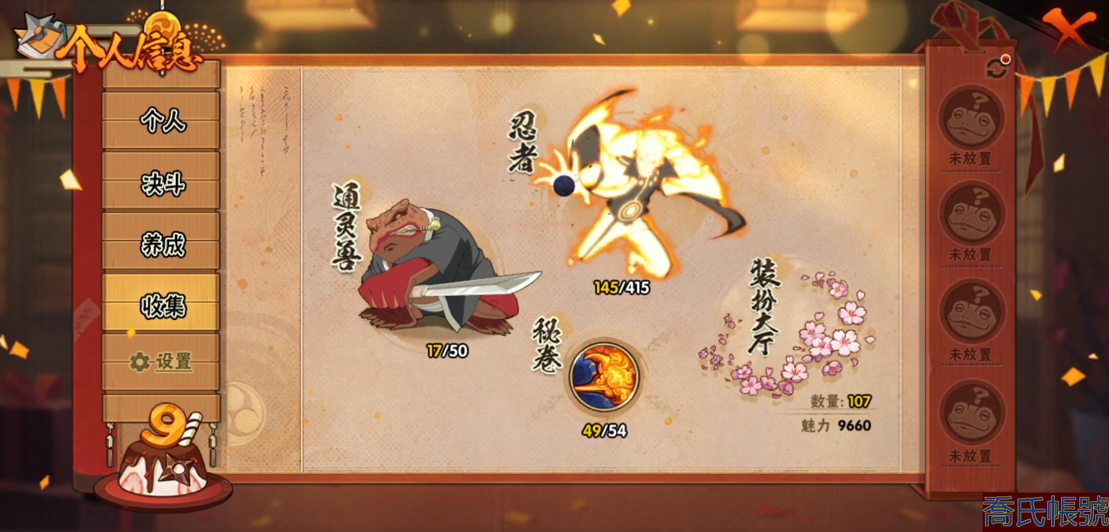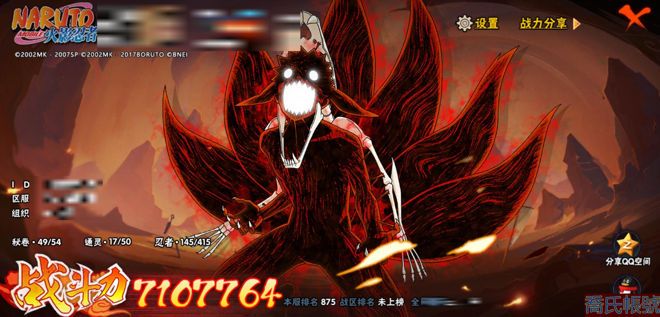 【11等】戰鬥力:1079W+;段位:上忍2階;本服排名:1074;戰區排名:未上榜;