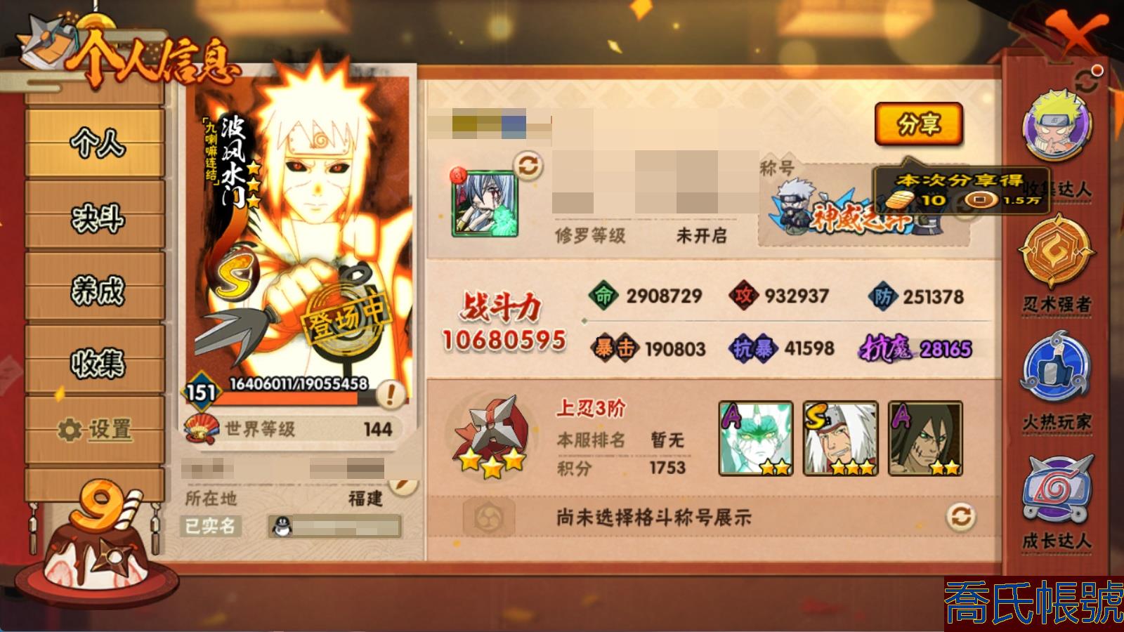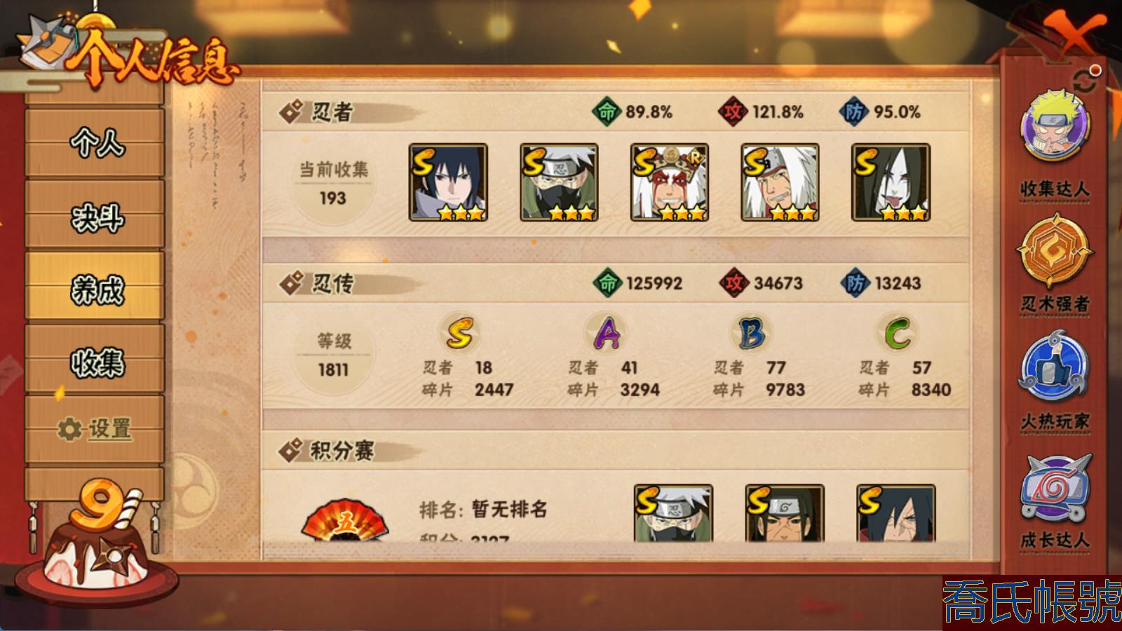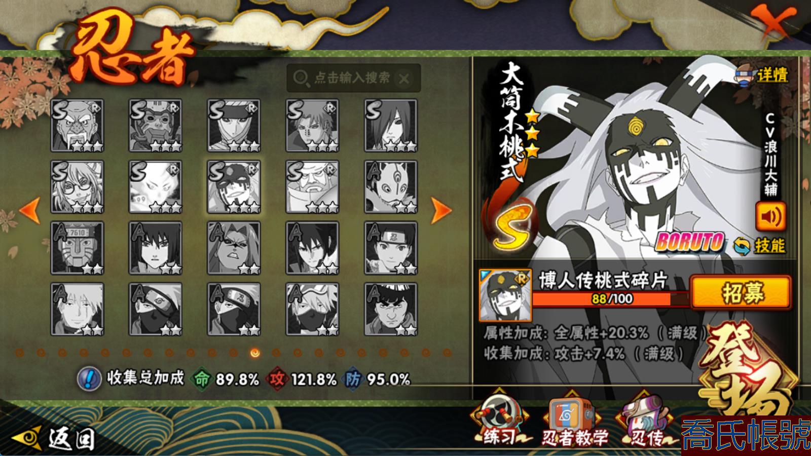 【OBHMWEL945242】VIPV8級;S忍18個;A忍41個;通靈獸18個;S忍:傳說中的三忍自來也,忍界大戰宇智波帶土,須佐能乎旗木卡卡西,須佐能乎宇智波止水,穢土轉生千手柱間,穢土轉生宇智波鼬,永恆萬花筒宇智波佐助,忍界大戰艾,舞之豪傑自來也,百豪綱手,須佐能乎宇智波鼬,天道佩恩,死門邁特凱,忍界大戰大野木,穢土轉生解宇智波斑,大蛇丸,波風水門,九喇嘛連結波風水門;A忍:忍界大戰李洛克,穢土轉生角都,忍界大戰日向寧次,四代目土影黑土,青年長門,穢土轉生迪達拉,忍界大戰奇拉比,青年波風水門,青年艾,近松十人衛千代,半蛇斗篷藥師兜,須佐能乎宇智波佐助,九尾查克拉漩渦鳴人,曉大蛇丸,地陸,百豪春野櫻,忍界大戰秋道丁次,死司憑血飛段,疾風傳我愛羅,仙人模式漩渦鳴人,萬花筒寫輪眼旗木卡卡西,桃式顯現漩渦博人,最終章日向雛田,六代目水影長十郎,不緣,不動,緋流琥蠍,宇智波泉奈,穢土轉生桃地再不斬,宇智波止水,奇拉比,飛段,邁特凱,宇智波鼬,幹柿鬼鮫,蠍,猿飛阿斯瑪,猿飛木葉丸,忍界大戰土臺,俠隱江湖大野木,仙人模式巳月;永久通靈獸:砂之守鶴,藍蛇,蛤蟆吉,忍龜,鐮鼬,猿魔,山椒魚,蜃,蛤蟆仙人,蛤蟆健,蛤蟆龍,蛤蟆廣,夢貘,鷹,蛞蝓,忍犬,鮫鯊,烏鴉;【1068W戰力 破面 紫狗 綠牛18S+骨架 青水41A+四百戰+6幕布】 戰力1068 忍者總數193 遊戲大區1373 剩餘金幣(萬)1 【暫時不可修改】 【VIP8】 S級忍者18 A級忍者41 B級忍者39 通靈獸18 時裝7 決鬥場景1 主場景2 決鬥幕布6 S級忍者:穢土轉生解宇智波斑,舞之豪傑自來也,九喇嘛連結波風水門,天道佩恩,須佐能乎宇智波鼬,忍界大戰宇智波帶土,忍界大戰大野木,大蛇丸,波風水門,傳說中的三忍自來也,穢土轉生千手柱間,死門邁特凱,須佐能乎宇智波止水,須佐能乎旗木卡卡西,穢土轉生宇智波鼬,忍界大戰艾,百豪綱手,永恆萬花筒宇智波佐助; A級忍者:仙人模式巳月,邁特凱,俠隱江湖大野木,忍界大戰土臺,猿飛木葉丸,穢土轉生迪達拉,死司憑血飛段,忍界大戰奇拉比,青年艾,六代目水影長十郎,不緣,桃式顯現漩渦博人,最終章日向雛田,忍界大戰李洛克,青年長門,穢土轉生角都,緋流琥蠍,宇智波泉奈,須佐能乎宇智波佐助,地陸,曉大蛇丸,百豪春野櫻,奇拉比,萬花筒寫輪眼旗木卡卡西,宇智波止水,蠍,疾風傳我愛羅,宇智波鼬,穢土轉生桃地再不斬,忍界大戰日向寧次,半蛇斗篷藥師兜,不動,幹柿鬼鮫,猿飛阿斯瑪,四代目土影黑土,青年波風水門,九尾查克拉漩渦鳴人,近松十人衛千代,忍界大戰秋道丁次,仙人模式漩渦鳴人,飛段; B級忍者:漂泊君麻呂,忍界大戰重吾,武當宗師日向花火,截拳小李,峨眉天天,御手洗紅豆,新春薩姆依,最終章鹿丸,新春紅豆,少女櫻,卯月夕顏,新春黑土,最終章佐井,漂泊琳,赤土,咒印佐助,夕日紅,重吾,泳裝雛田,鬼燈水月,佐井,漩渦玖辛奈,藥師兜,少年卡卡西,白,咒印君麻呂,犬塚花,冬日限定夕日紅,中秋鳴人,詠春寧次,「忍者之路」雛田,新春佐井,惡靈兜,惠比壽,野原琳,香燐,大和,君麻呂,少年帶土; 通靈獸:忍犬,鐮鼬,蛤蟆仙人,藍蛇,猿魔,鮫鯊,蛤蟆吉,山椒魚,蛤蟆健,忍龜,蜃,烏鴉,蛤蟆龍,蛤蟆廣,夢貘,鷹,蛞蝓,砂之守鶴; 時裝:百戰宇智波鼬,百戰天道佩恩,李洛克【截拳】,百戰大蛇丸,蜀面豪傑,花火【武當宗師】,百戰波風水門; 決鬥場景:月爆星河; 主場景