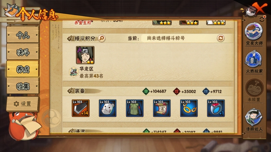 有月卡須佐卡卡西佩恩忍戰李青春哥非常值兩個蠍子傀儡都差幾片碎片可肝可乞討3s超多a和碎片金鳴48片碎片非常適合新手開荒戰力跟得上排名150名非常容易裝b有二次的只是不穩定而已等幾天就有了