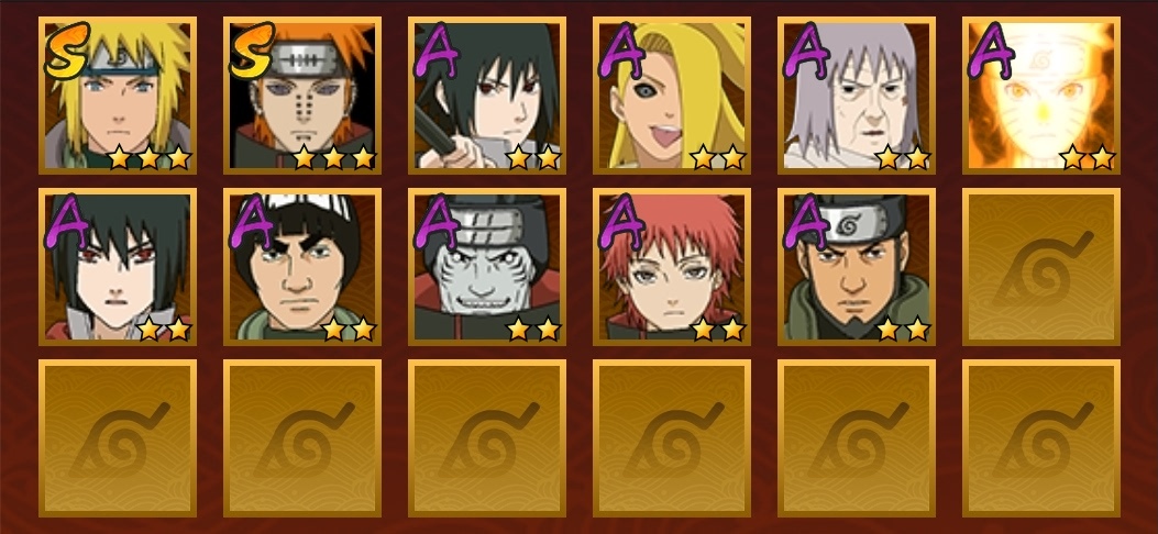 水門,天道佩恩,九尾鳴人,萬花筒佐助,須佐佐助,凱,阿斯瑪,近松十人衛千代,蠍,鬼鮫,穢土迪達拉