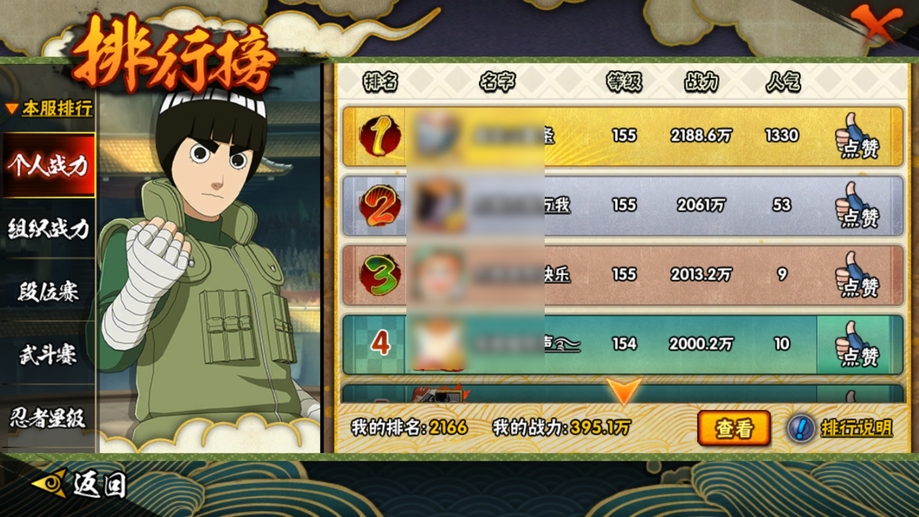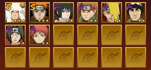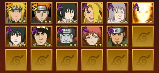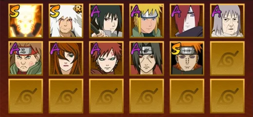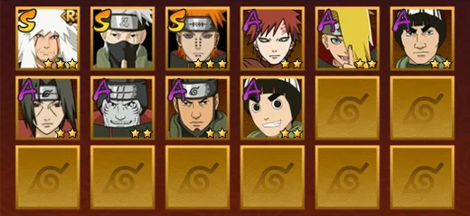 舞之豪傑自來也,水門,忍戰帶土,天道佩恩,九尾鳴人,須佐佐助,凱,阿斯瑪,青年水門,疾風傳我愛羅,青年長門,蠍,鬼鮫,死司飛段,桃式顯現博人