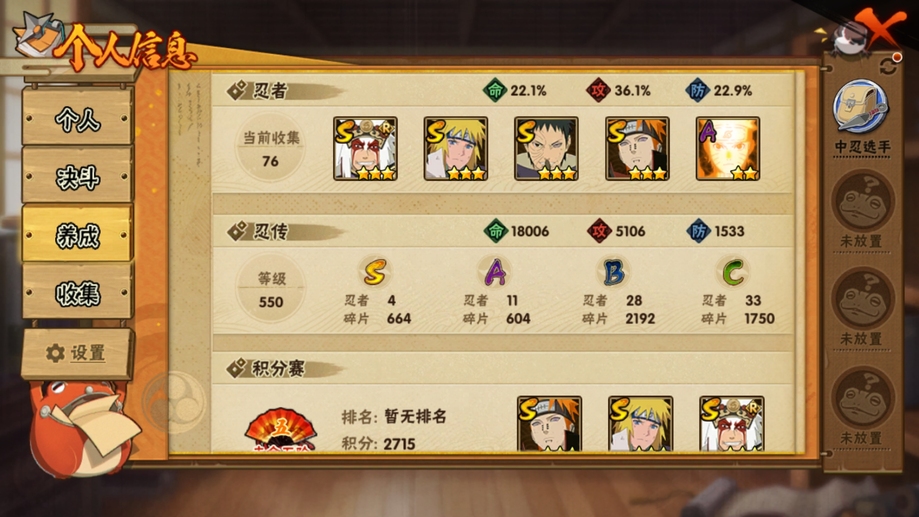 小櫻34片,剛充的月卡,忍法帖有很多片可以補