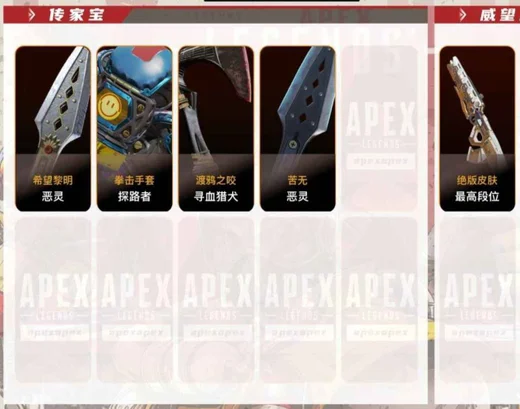 【OBAPKLF596142】266級 青銅,金幣數量:100,金皮數量:508,傳家寶:8,傳家寶碎片:150,威望皮膚:2,2個賽季滿級,【賽季滿級2】賽季滿級:S14賽季,S15賽季; 【傳家寶8】:希爾-雙絕,羅芭-阿蘭薩之爪,瓦爾基裡-朱雀,沃特森-能量讀取,班加羅爾-冷鋼,動力小子-蝴蝶刀,命脈-電棒,惡靈-苦無,神話-傳家寶碎片,【威望皮膚2】:APEX攔截者,APEX虛空轉移,傳家寶碎片可以買雙刀或者爪刀