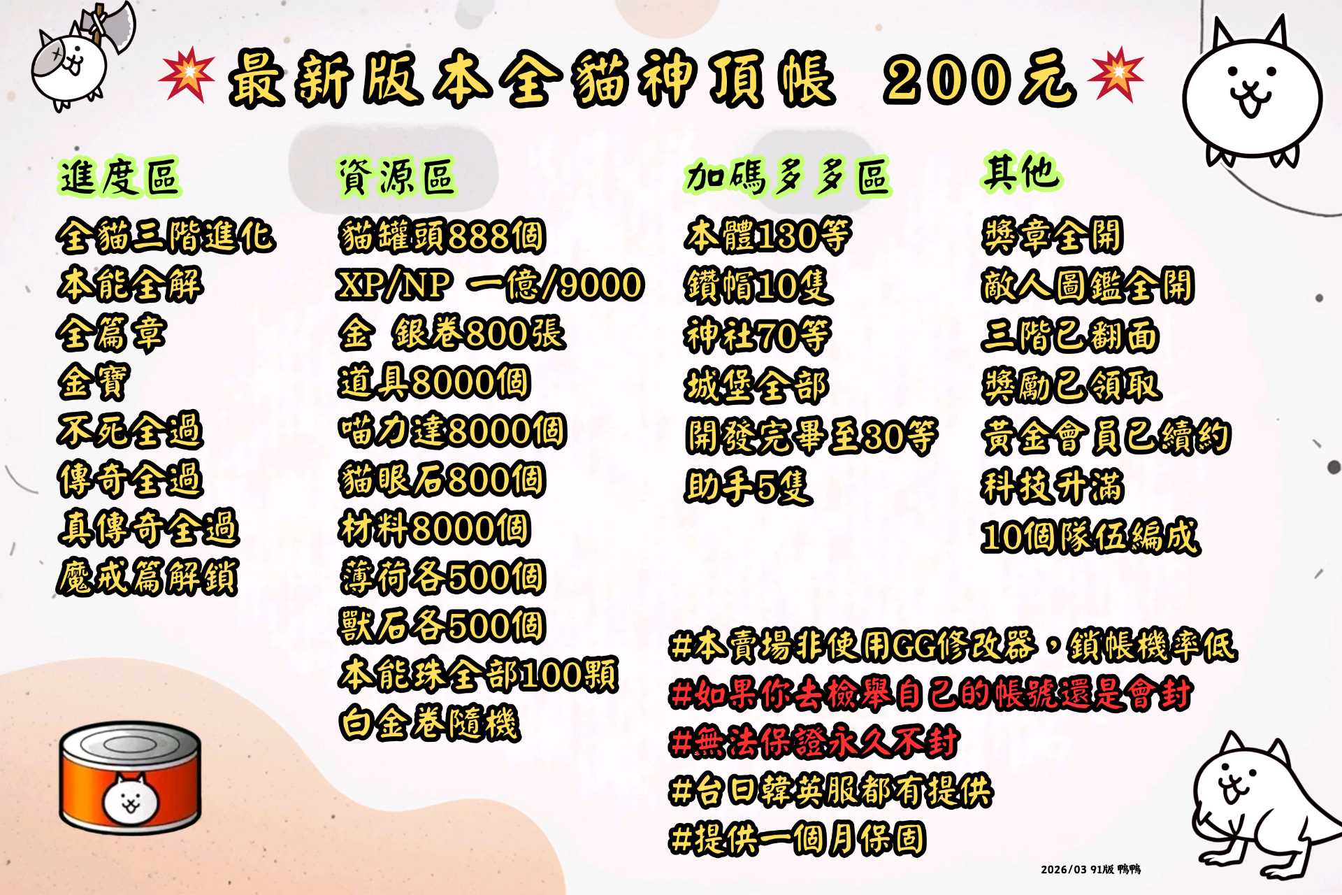 資源補充的部分刷的數量太多的話,改版還是有機率鎖帳,不介意者再下單,且無售後,可加50元存檔,被封時可找回帳號。