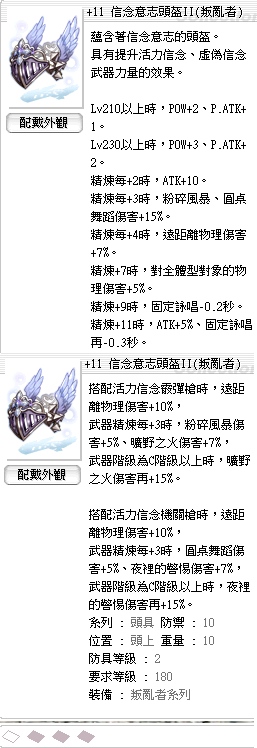 @180等 +11信念意志頭盔(叛亂者):固定詠唱減少0.5秒/圓桌舞蹈增傷
