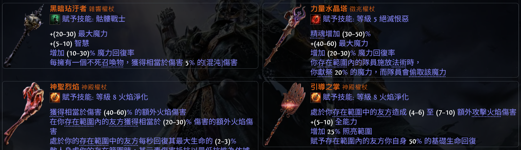 道具 【權杖、狩獵傳奇武器】 黑暗玷汙者力量水晶塔神聖烈焰引導之掌