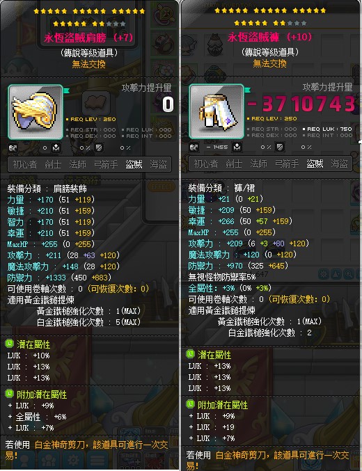 道具 【永恆盜賊肩膀】 永恆盜賊肩膀/ 永恆盜賊褲 / 6排%幸 976 / 夜使 影武 暗夜 影武