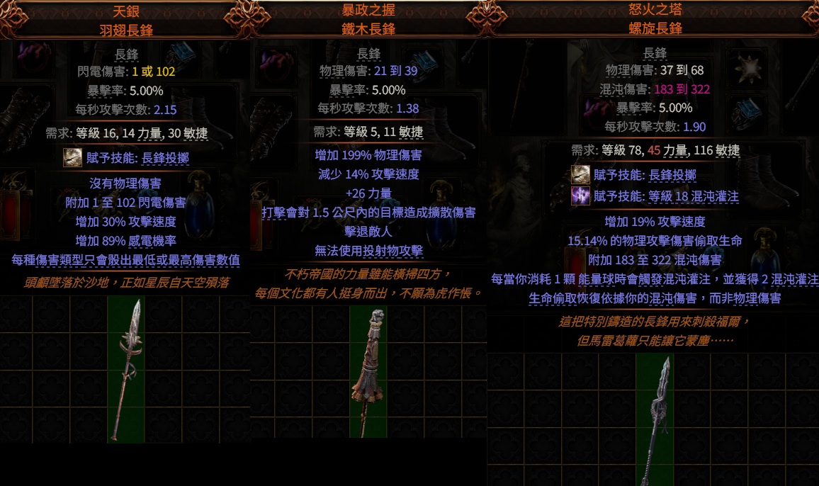 道具 混沌灌注👌天銀.羽翅長鋒、怒火之塔.螺旋長鋒、暴政之握.鐵木 ( 長鋒投擲