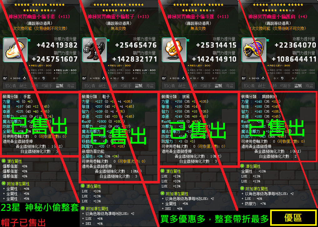 道具 【退谷出清.歡迎來談】 賊法劍弓%幸%智%力%敏全屬、副武三物三魔雙物總雙魔總、神秘永恆、MD女武/退谷