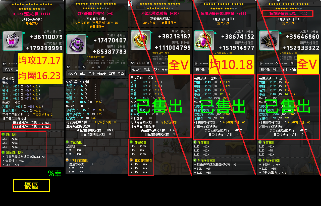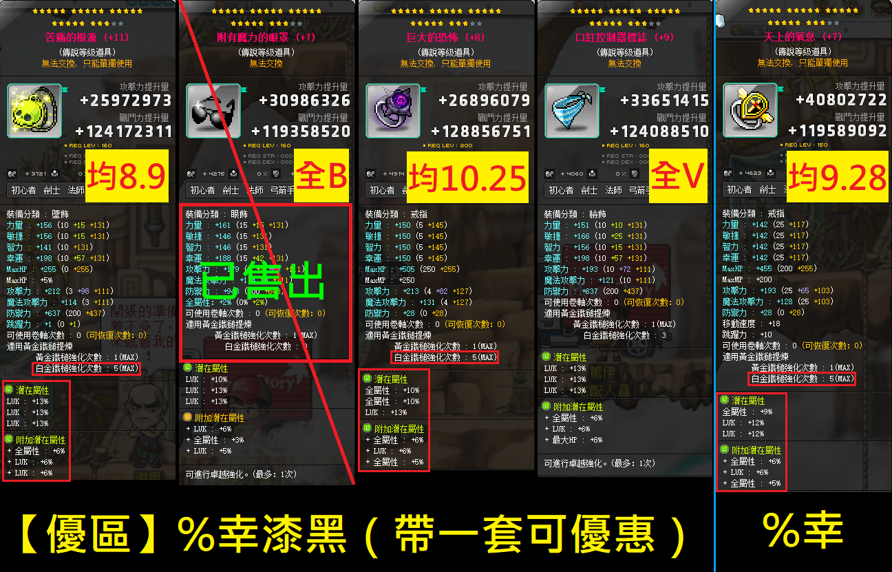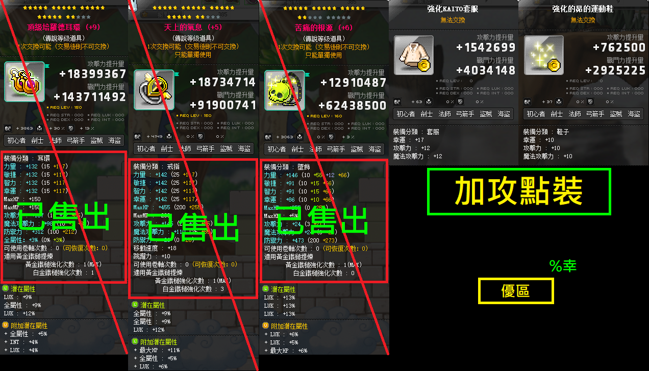 %幸、%智、%力、%敏,各職裝備都有