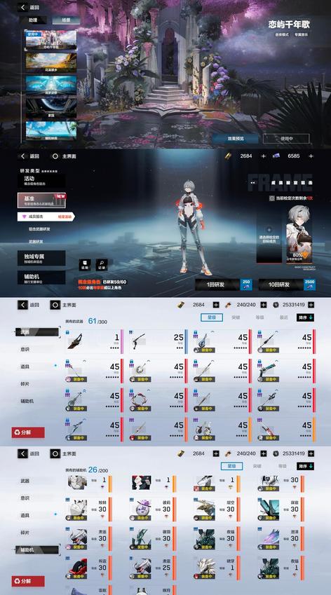 物理:ss3希聲ss檀心s迴音 雷隊:ss3囚影ss芒星s森息 冰隊:ss啟明ss3萬事s萬華 火隊:ss誓焰ss塵銘ss灼惘 暗隊:ss深謠ss輝曉ss謬影 空隊:ss終焉ss慈悲者 23專武加共鳴,基準池59發有檢定,2w憑據/4共鳴材料/1武器自選,花嫁誓炎/泳裝萬華/酸菜魚3特效塗裝,官服單綁手機可換綁
