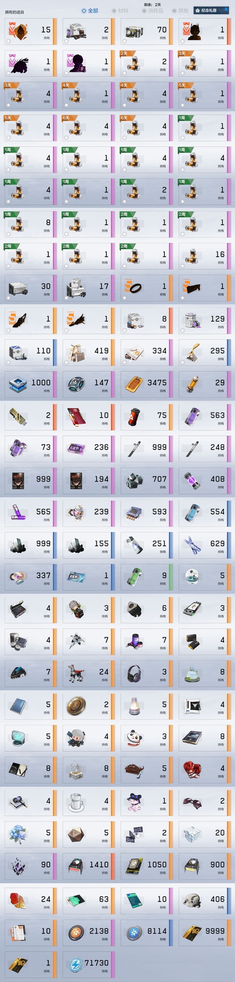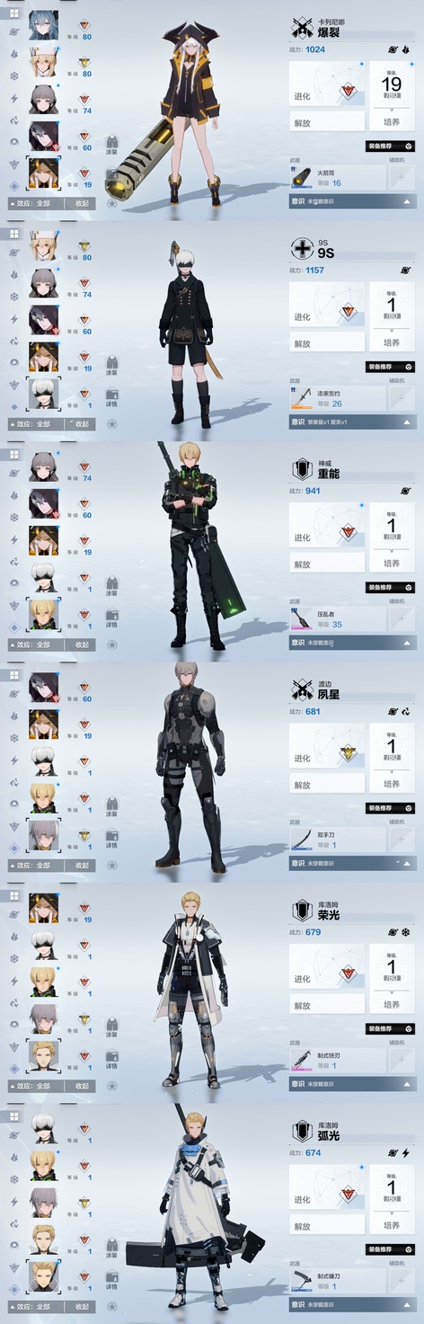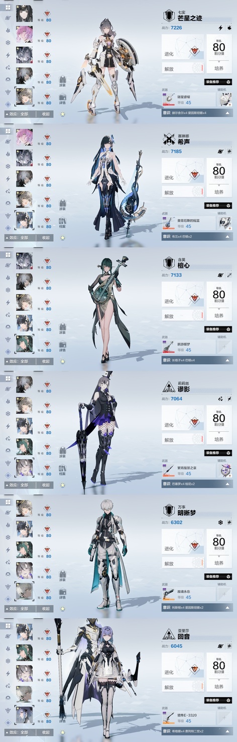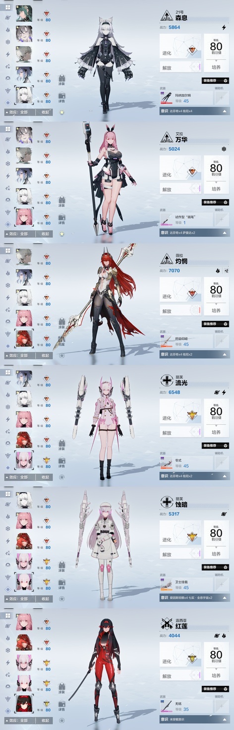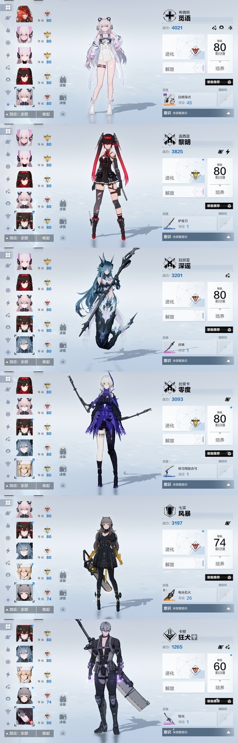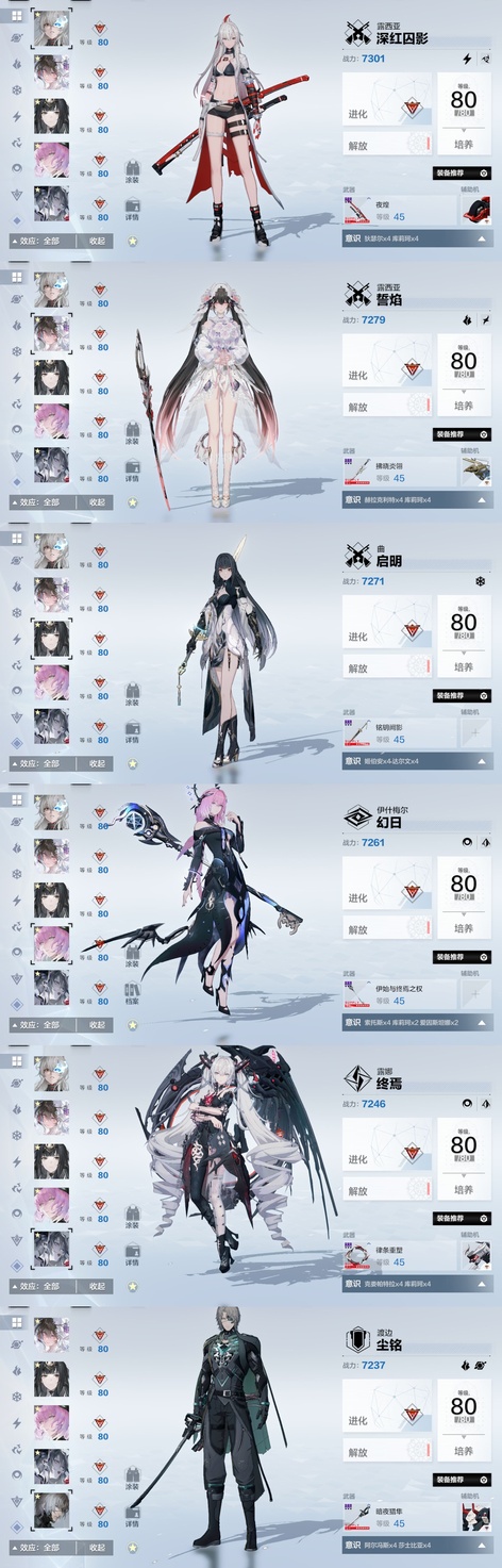 戰雙帕彌什3.1w卡六隊全齊 物理:ss希聲,ss檀心,ss迴音。 雷隊:ss芒星,ss囚影,s森息。 冰隊:ss啟明,ss明晰夢,s萬華。 火隊:ss誓焰,ss渡邊,ss灼憫。 暗隊:s深謠,ss謬影。 空隊:ss終焉,ss幻日。 露西亞婚紗皮膚全套帶背景,武器皮,頭像頭像框,露娜哥特皮膚,布偶熊泳裝,囚影健身服等 在崗全齊帶專武,3w卡卷,2w票據,400骨頭,大量資源,足夠接著備戰新版本