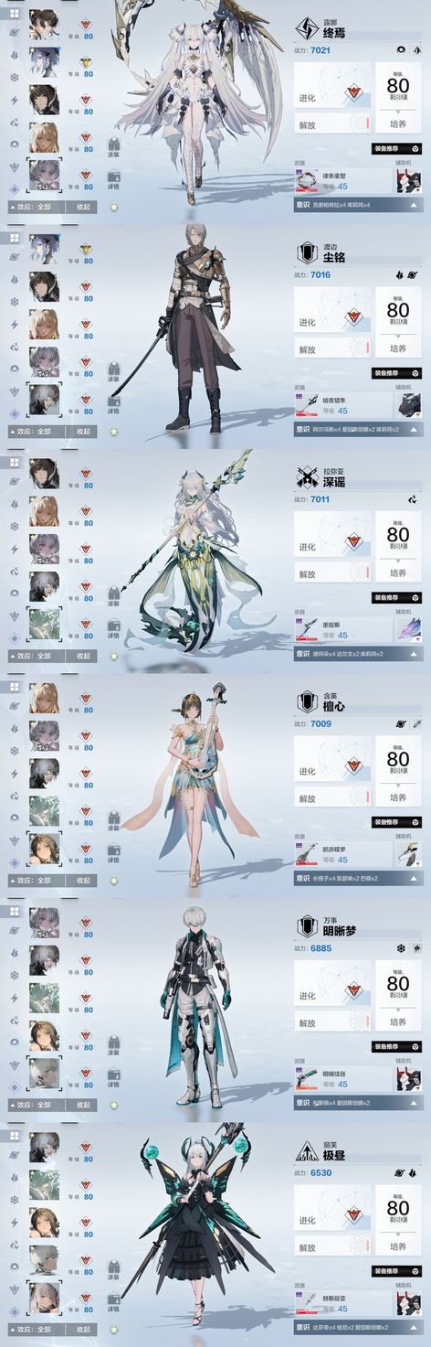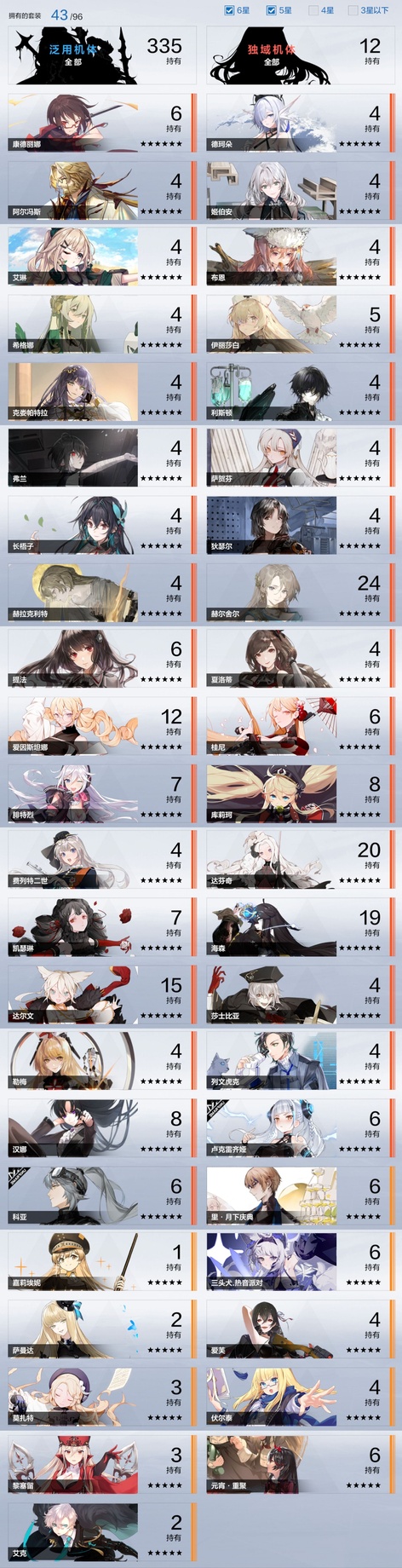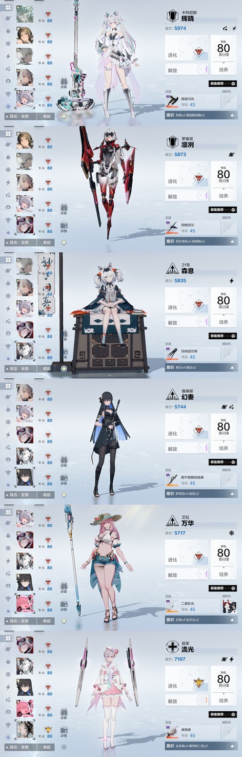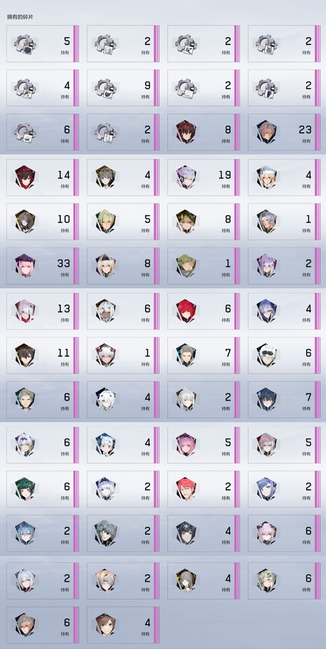 sss薇拉sss迴音ss6輝曉ss3囚影ss3深痕ss3明晰夢ss啟明ss誓焰ss終焉ss深謠ss檀心ss森息ss明晰夢ss萬華ss塵銘ss極晝 六隊幻神全ss全2帶專武7k戰畢業,疾雷自選跟基準自選還在,不限時隨時補芒星/希聲/幻日,火薇拉灼惘池墊了58抽 氪度3k,迴歸活動能領幾千活動卷,帶共鳴30把專武,29%皮膚收集,19特皮,大部分都是在崗特皮,囚影限定特皮全齊,尼爾黑巖聯動皮僅缺一