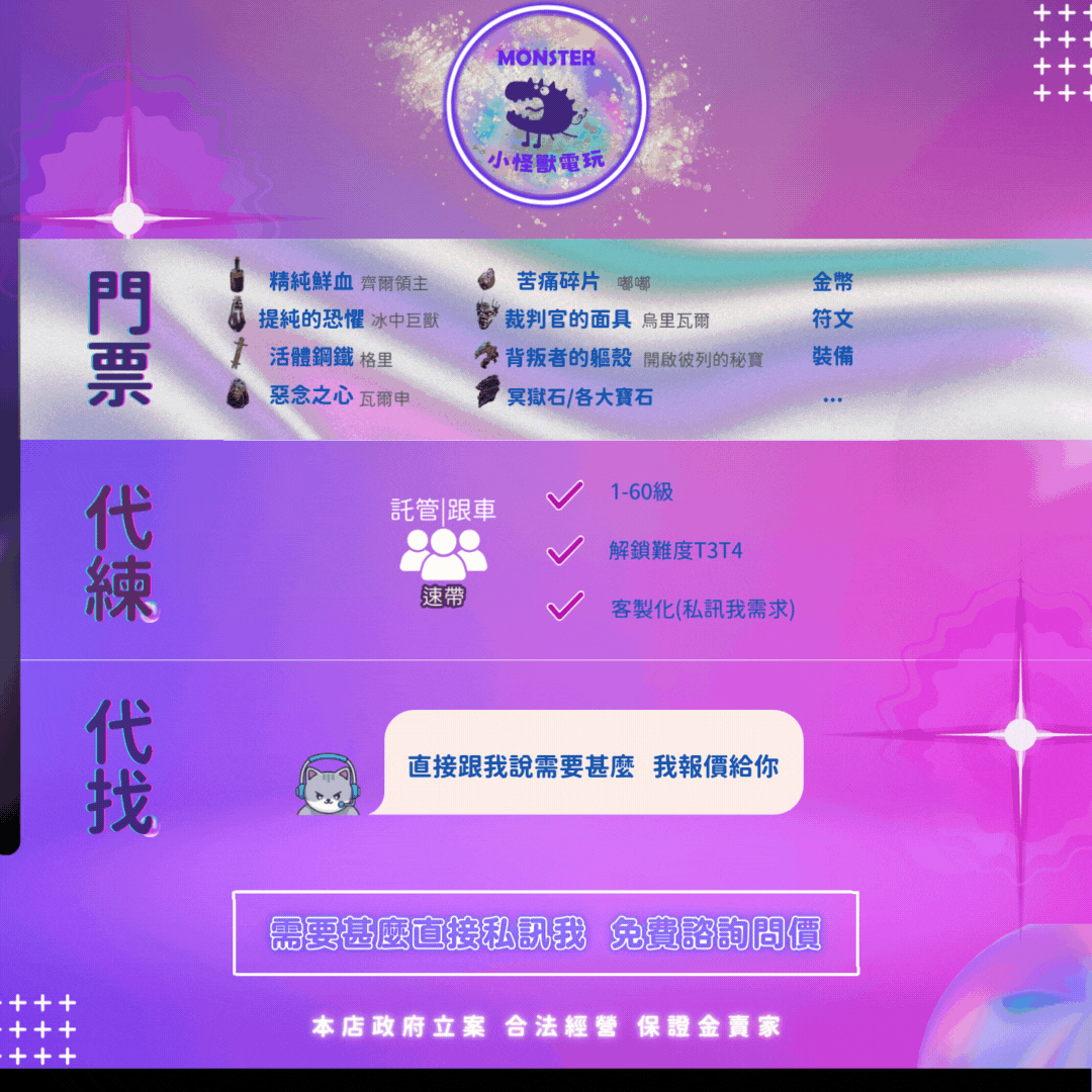 代練 👾小怪獸電玩👾S8賽季/金幣裝備代練/彼列門票80組100現貨🔥馬上交易