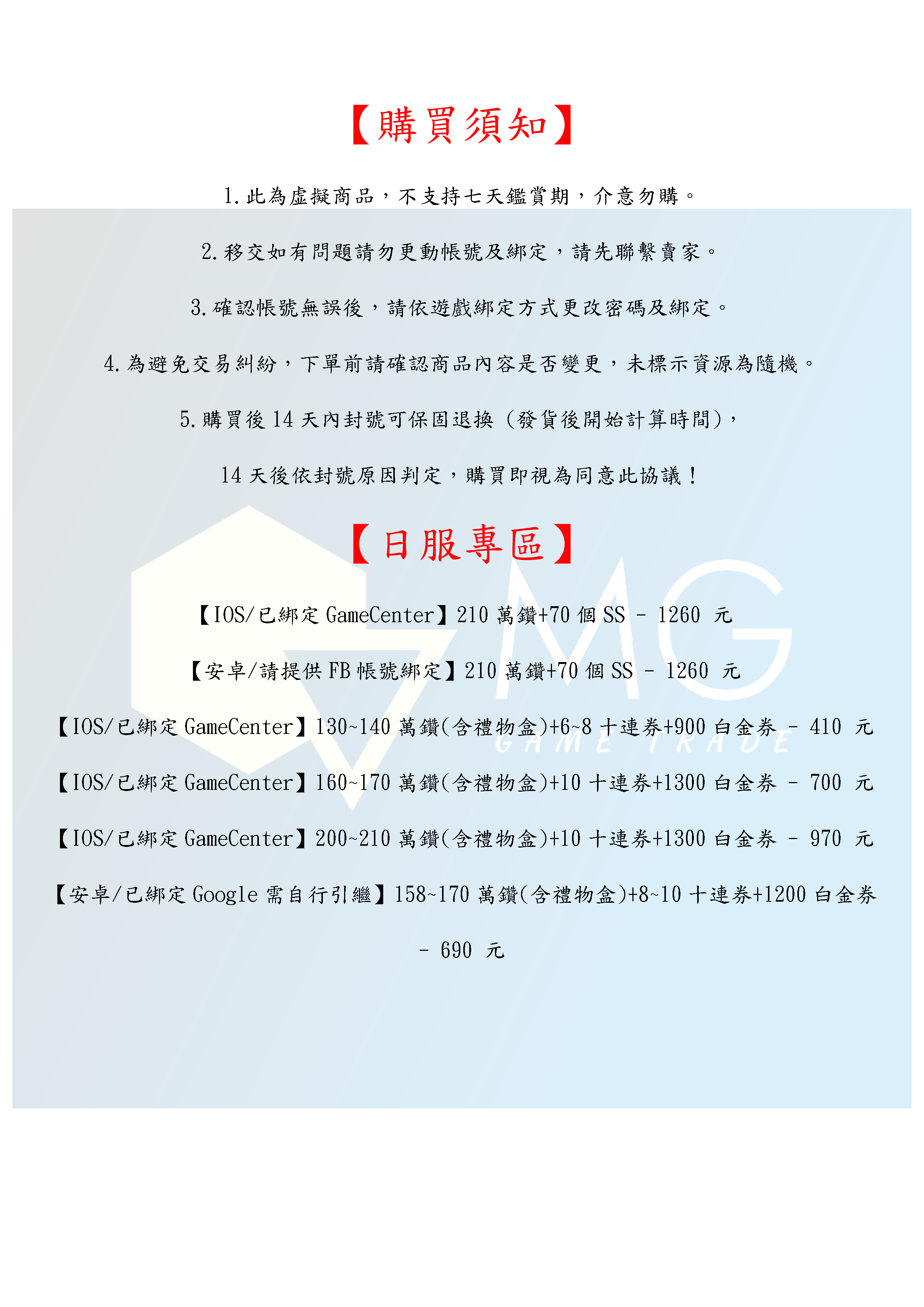 14天後依封號原因判定,購買即視為同意此協議!