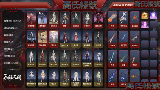 【OBYDNYF043642】24紅680金|等級429|收藏值452471|墜日|幻絲608803|金磚304|通行證Lv.66 紅色神品:初代玄女,星輝魔紗,櫻雲天女,人偶之夢,墨離,泣珠龍紗,通天狐襖,流金曉錦,逐光者,天罰,蒼穹之光,麒麟魄,少陽劍,冰魄,斷晝吟,太玄之刃,帝星,比羿,狼主,西行劫·如意金箍棒,狂龍,驚百里,緋羽流風發,初櫻綺夢發 角色金色皮膚:倒反陰陽·熾羽,開闢鴻蒙·山川潤,夜華朝,夏日派對·午後瑰夏,碧水青天,崑崙聖女,九陰聖女,秋藏桂,云溪仙子,綠野守護·悠竹萌客,街頭狂歡·塗鴉少女,綺雲衫,西行劫·紫衣仙子,黑貓警長·警長制服,九驪之君,武道無窮·少林,八寶龍王,傾國傾城·沉魚,九州遺珍·福壽仙,甜夜安眠·鵝黃紗夢,開闢鴻蒙·風雨諧,鑄神·天祿瑞光,智繪·萍之緣,觀山海·春神句芒,新倩女幽魂·瑤光沐月,鬥羅大陸·唐三,追獵,康復之星,巨闕,觀山海·夏神祝融,遊四海,道詭異仙·李歲,狩獵都市·紫藤神子,洛天依·星空投影,怦然心動·軟暖甜夢,春日序曲·晨風,夏日派對·高校水著,山吹茶,承雲蘭壽,御宅羅夢,清雅少女,狩獵都市·暗夜利刃,陰陽師·櫻雨刀舞,陰陽師·赤影妖刀姬,妖刀姬,甜夜安眠·琉璃香檳,庖丁·餚嬋,綠野守護·暗沼摩羅,阿娜希塔,逆水寒·鳶紗,赤霧煙霞,伏波龍女,龍之道·無拘,倒反陰陽·鐵面,開闢鴻蒙·金戈止,弘毅袍,龍之影·過江龍,黃庭道,梨園傳奇·柳生,封神錄·申公豹,司天命,傾國傾城·落雁,祿運玉霄,封神錄·龍吉公主,姑射真人,麟鹿大鎧,花之傾奇,傾國傾城·閉月,巔峰極速·蕾雅,拳皇·不知火舞,千秋匠心·玉葉景,觀山海·青鳥,浣煙紗,花無痕,瀚海蒼鷹,福瑞天澤,街頭狂歡·不敗擂主,觀山海·秋神蓐收,冬無歸,怦然心動·音律織光,夏日派對·盛夏白陽,代號·絲蓴,干將莫邪,護世四法·持國天王,武道無窮·八極,觀山海·冬神玄冥,共赴無間·幽夜玲瓏,傾國傾城·羞花,不凡·幻夢尋奇,春不斂,赤陽天狐,墨行衣,夏日派對·赤夏悠漾,封神錄·妲己,日影花陰,黃昏巫主,卷王,天工奧妙,夜綢袍,黑貓警長·班長制服,壽竹雲春,逆水寒·極夜天曦,虹貓藍兔七俠傳·虹貓,封神錄·姜子牙,孤影戎裝,雲間影,綠野守護·山漠獰影,斬神·倪克斯,甜夜安眠·碎月緞光,暖冬茶馨,雪鈴綺歌,斬神·司小南,夏日派對·綺夏幻夢,龍之道·靈心,虹貓藍兔七俠傳·藍兔,彩雲衣,斬神·林七夜,狩獵都市·雷行獵手,墨染千秋·墨遊痕 髮型金色皮膚:簪纓發,(挑染)雲霞發,韶光發,楚韻九歌·爛漫發,綠野守護·嬌憨發,P5R·NOIR髮型發,伏苓發,鑄神·降香發,緋羽流風發,甜夜安眠·暖絨發,九州遺珍·春桃發,傾國傾城·浣春發,共赴無間·雲苓發,鬥羅大陸·海神發,逆水寒·江海發,巫師3·白狼發,月丹發,長歌詩韻·星橋發,怦然心動·戀歌發,洛天依·洛紀元發,道詭異仙·太歲發,狩獵都市·歸寧發,綠野守護·冷傲發,皰丁·沸涓發,甜夜安眠·夜歌發,倒反陰陽·銘誓發,(挑染)清威發,封神錄·紅鸞星發,排霜發,(挑染)凜威發,(挑染)鴻影發,觀山海·青鸞發,千秋匠心·琳琅發,傾國傾城·遮雲發,拳皇·女忍發,觀山海·天刑發,(挑染)戾君發,(挑染)宵燭發,觀山海·冥泉發,百戰·漆刃發,繾綣發,幽焰發,流螢發,鶴髮,古溪發,封神錄·籠煙芍藥發,春日序曲·玄瑛發,(挑染)商月發,驚雀發,傾國傾城·春棠發,不凡·童真發,雲鬢發,共赴無間·迷心發,秀逸發,逆水寒·極夜發,(挑染)玄冥發,封神錄·仙風發,虹貓藍兔七俠傳·虹發,(挑染)璀璨發,(挑染)甜夜安眠·夕霞發,蜜語發,秘銀髮,斬神·黯月神儀發,曉夢發,龍之術·隨性發,斬神·詭紗雙影發,虹貓藍兔七俠傳·藍髮,斬神·熾羽塵光發,狩獵都市·迅猛發,墨染千秋·點驚鴻發 武器金色皮膚:御氣弩,穿雲燕,天牛翼,朱雀,冬日序曲·雪野巡禮,戲祥雲,綠野守護·雨幕,引冰落,螢火,天心玉,雪國禮炮,兔華籠,植物大戰殭屍2·玉米炮手,雷落,鑽山,觀山海·嘉果花,造景,狩獵都市·脈衝銀顎,丹鶴,植物大戰殭屍2·機槍豌豆,凝冰魄,長歌詩韻·夜觀燈,虎踞,心魔,烏木弓,誅神,豹胎易筋弓,逆逢,轉輪弓,仙毫,蓮心劍雨,炎魔,秉青,玄銅飛軍,百戰·驚鋒,醒獅,綠野守護·毛乎乎,天狐,2674·原型,道詭異仙·七星銅錢劍,虹貓藍兔七俠傳·長虹劍,虹貓藍兔七俠傳·冰魄劍,財神劍,巫師3·湖女之劍,琴心,亢龍,隱鋒,監星尺,赤霄,冷香,壺中日月,含光承影,醉花風,切影,拂雪絨,毅魂守,鎏金勺,數珠丸,倒反陰陽·盡春鋒,雷厲,白鹿,錯金刀,燭淚,無韻,斬銀河,青石猊,破天,聽濤,斬神·前方禁行,璃光·星輝環月,千鈞羽,麒麟牙,劫濤·潮,神龍刀,滄螺溯浪,靈木角,鬥羅大陸·海神三叉戟,觀山海·金神鉞,長虹,建木,委蛇矛,輸液架,糖果棍,幽冥吟,武道無窮·封魔,學宮之杖,打狗棒,夏日派對·聽浪,判官筆,曼提柯爾之牙,橈尺刀,仙舞,華夏神兵·馬首刀,道詭異仙·天生我才,青峰疊扇,騰雲歌,耀夜流華,葉底花,千堆雪,逍遙,夔牛槌,月瞳,嘶風,精武,破劫·赤刃無雙,空寒,怨憎,武道無窮·雙蝶,西摩格鐮,禍忌,新月,共赴無間·蝴蝶心,赤影玄印,曜金紫珀,撼龍,觀山海·水衡 飾品金色皮膚:甜蜜心動,玄陶俑面·女,目瞪馬呆·女,雁落笠,崑崙龍神冠,競無間·女,黑貓警長·一隻耳,展鋒桂冠,美團·團上頭了,植物大戰殭屍2·腦子給我,粽香遠,綠野守護·絨絨貓,系雲瀾,觀山海·腓耳,妙法兜帽,觀山海·腓尾,黑貓警長·警帽,玄陶俑面·男,目瞪馬呆·男,甜夜安眠·絨熊奶泡,魔燭帽,觀山海·春木,硯臺,鑄神·靈瑞尾,虎頭帽,巫師3·驢耳朵,甲辰龍,福虎帽,洛天依·資料耳