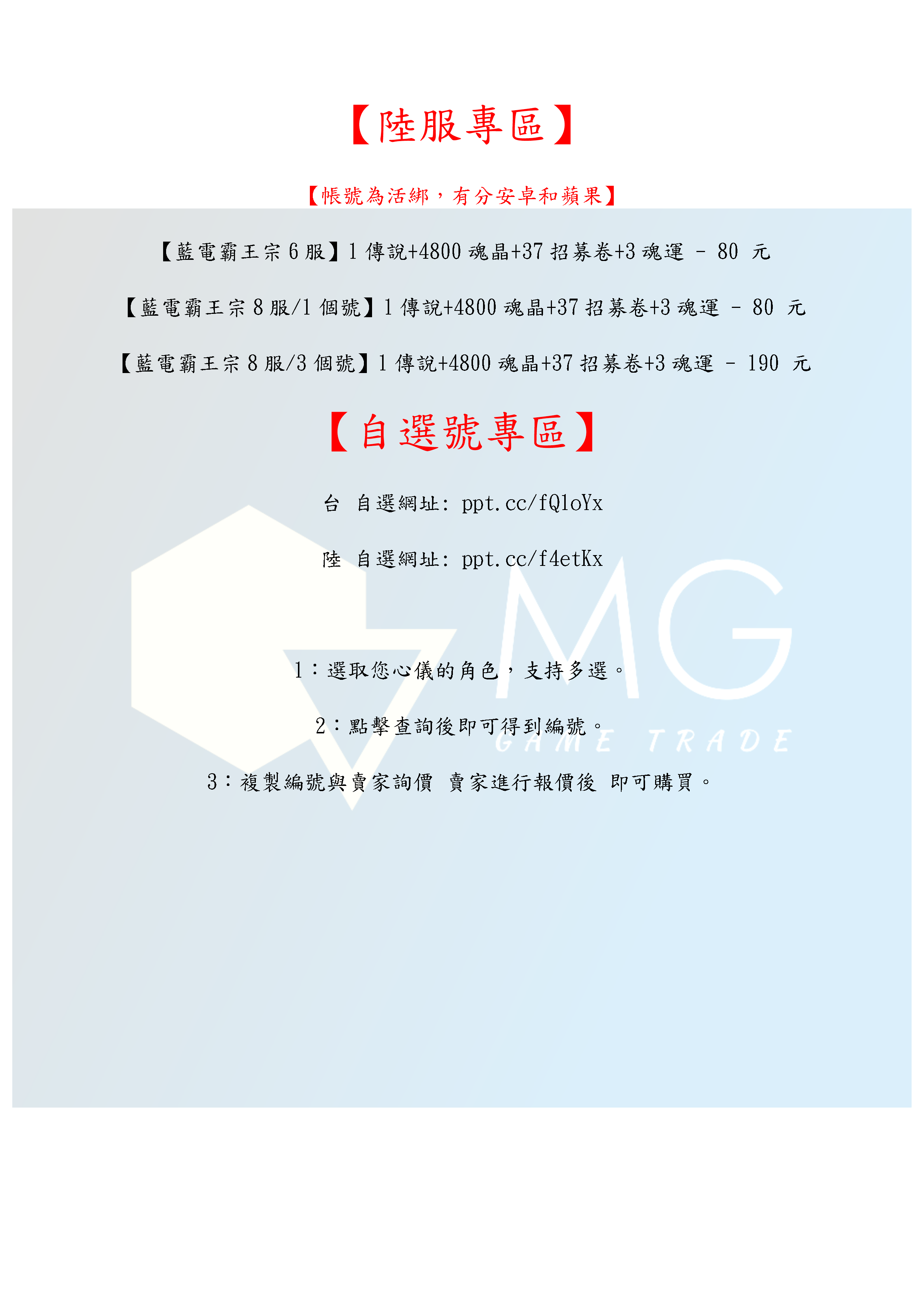 帳號 【初始號】 【MG數碼】 港台服 陸服 多石號 多魂晶號 初始號 自抽號 自選號 自選組合